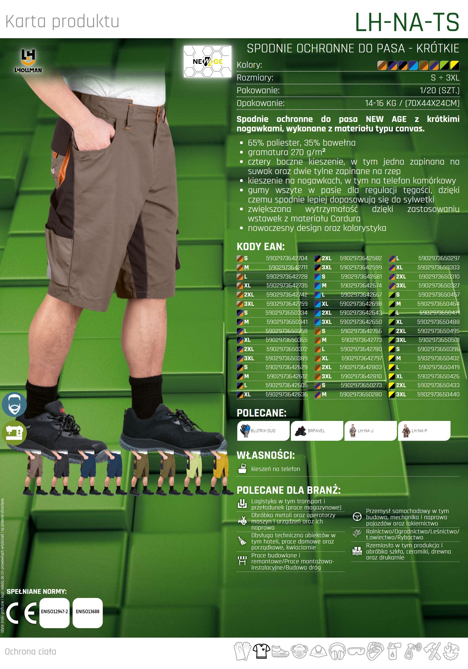 Krótkie spodnie ochronne khaki NEW AGE