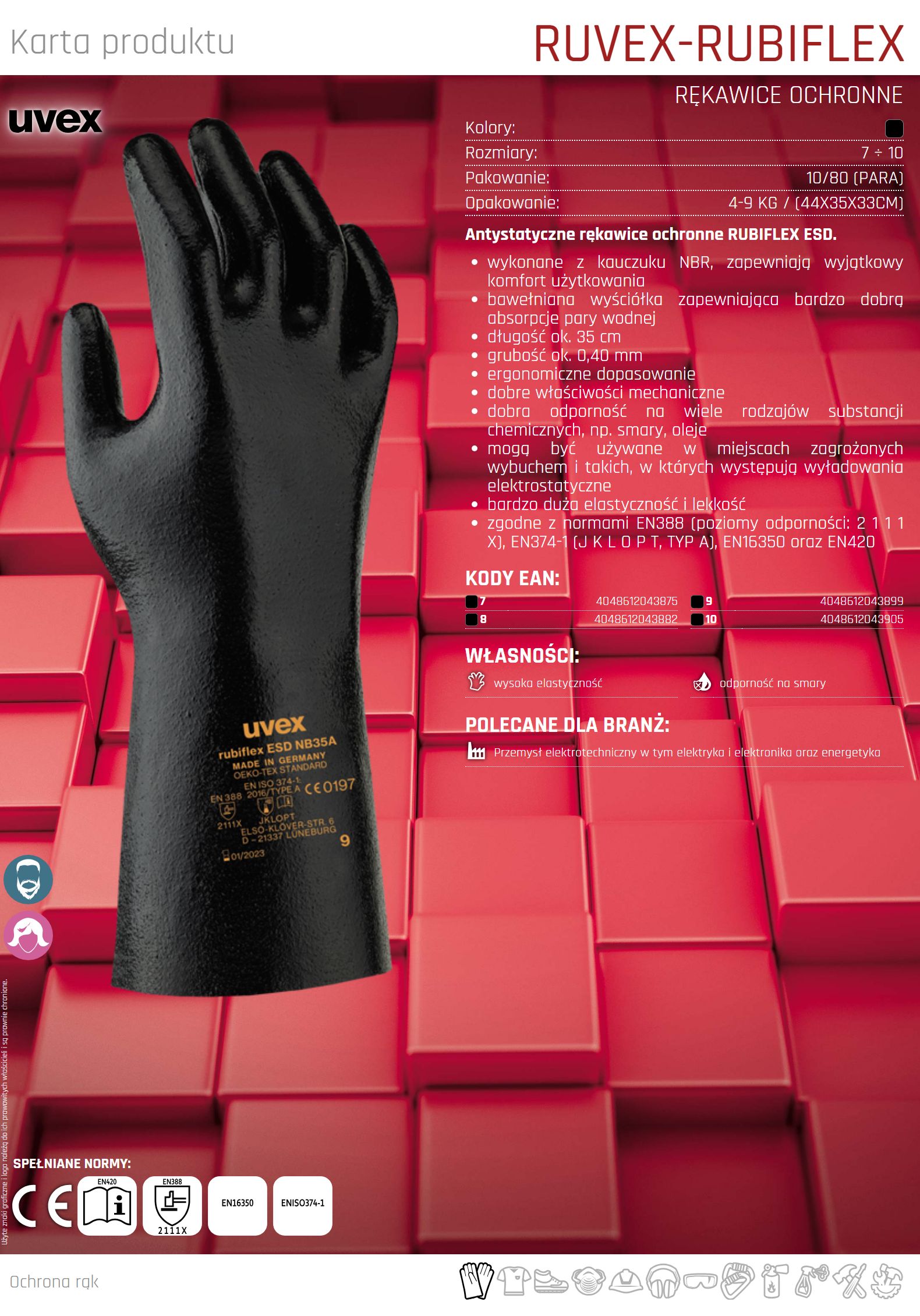 Antystatyczne rękawice ochronne RUBIFLEX ESD
