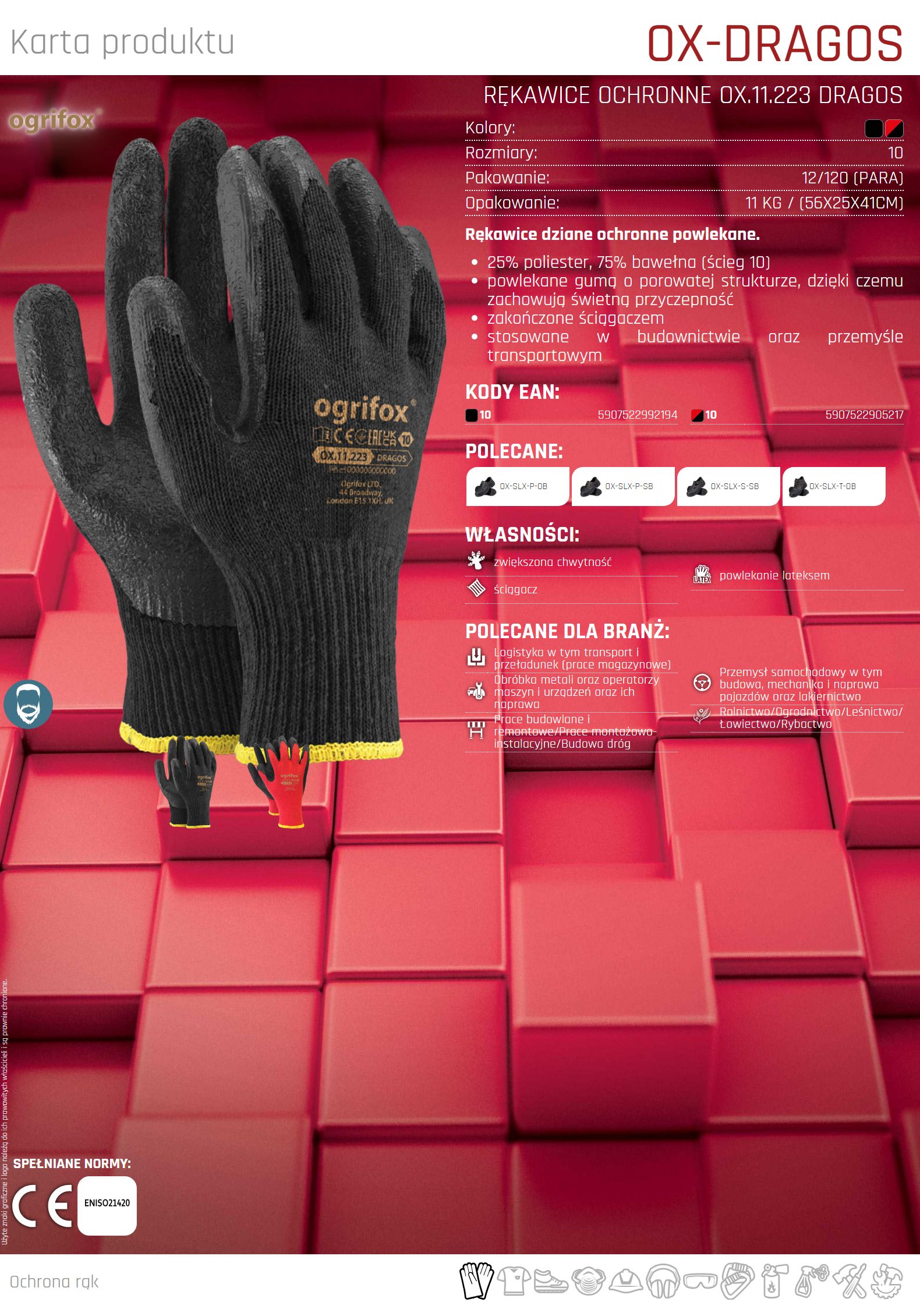 Powlekane rękawice ochronne OX-DRAGOS CB