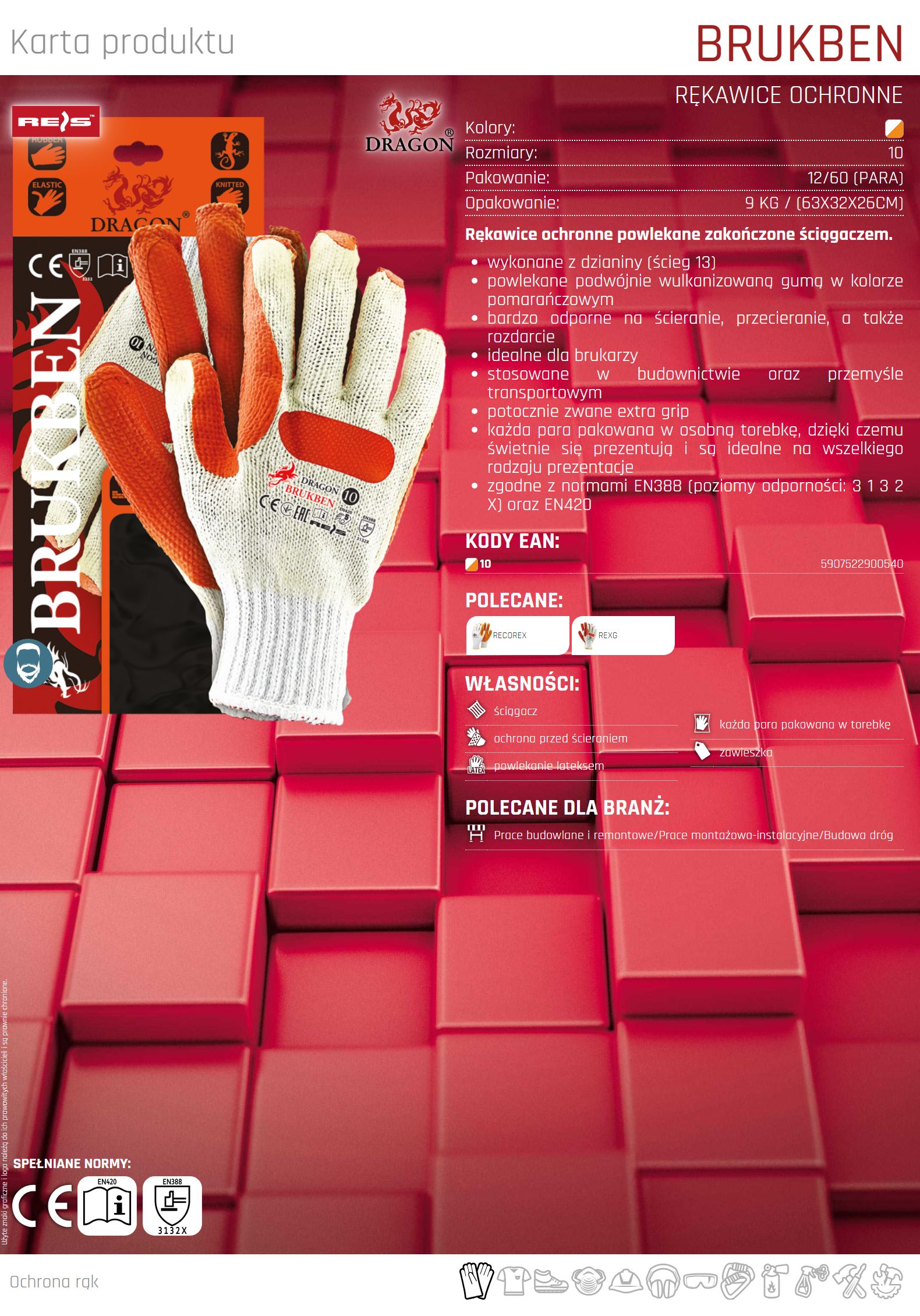 Rękawice ochronne powlekane BRUKBEN