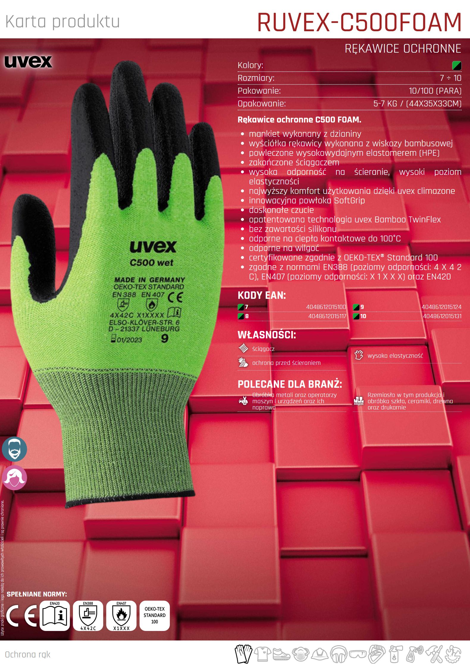 – zgodne z normami EN388 (poziomy odporności: 4 X 4 2 C), EN407 (poziomy odporności: X 1 X X X) oraz EN420