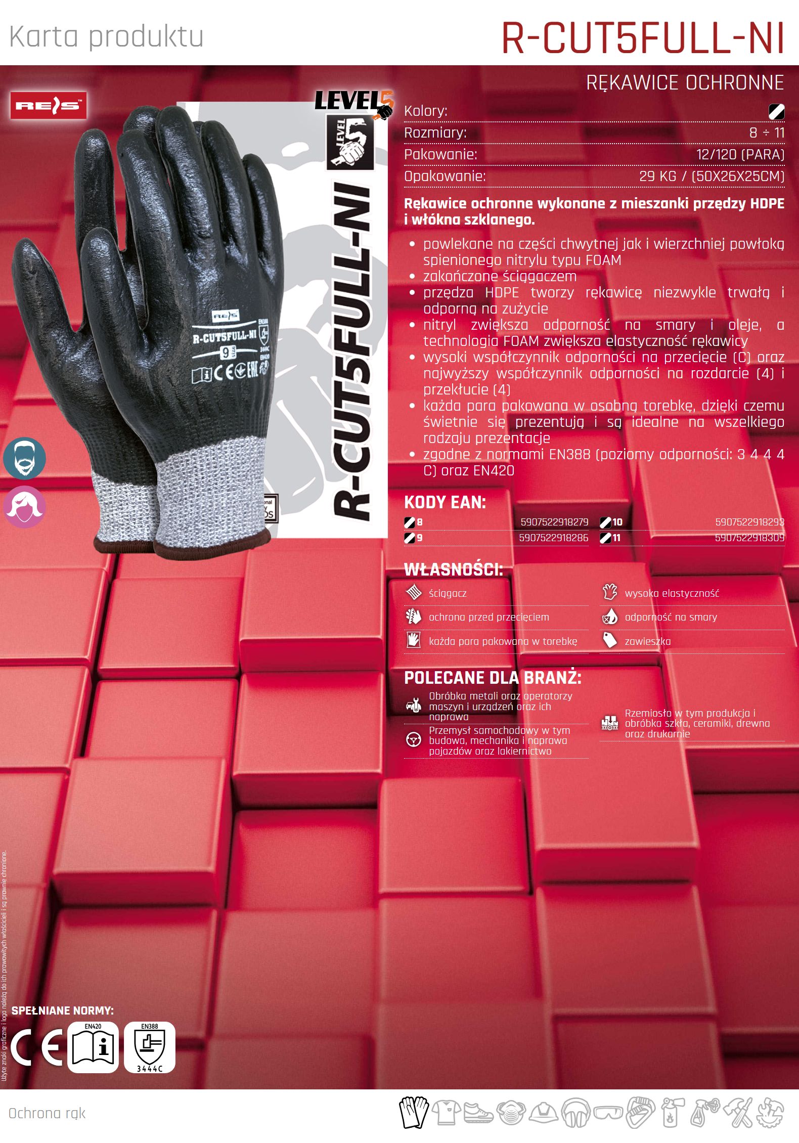 – przędza HDPE tworzy rękawicę niezwykle trwałą i odporną na zużycie