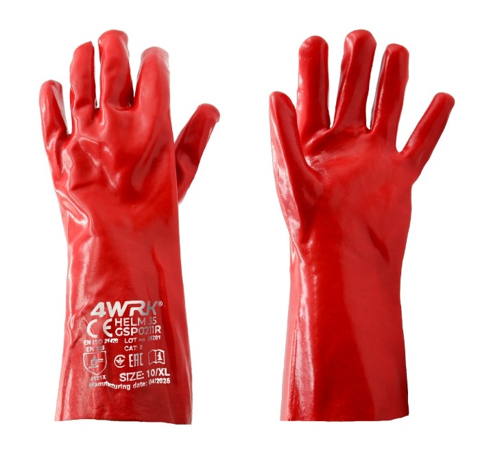 Rękawice robocze długie powlekane PCV 4WRK HELM 35 r. 10/XL – czerwone