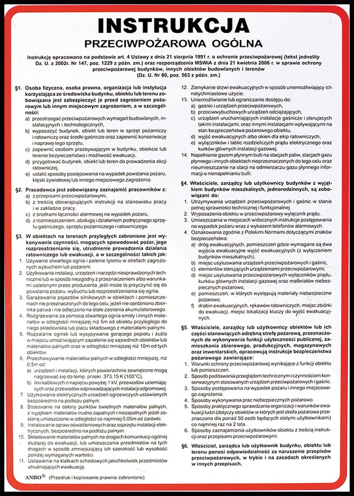 Instrukcja PPOŻ. „Instrukcja przeciwpożarowa ogólna”.