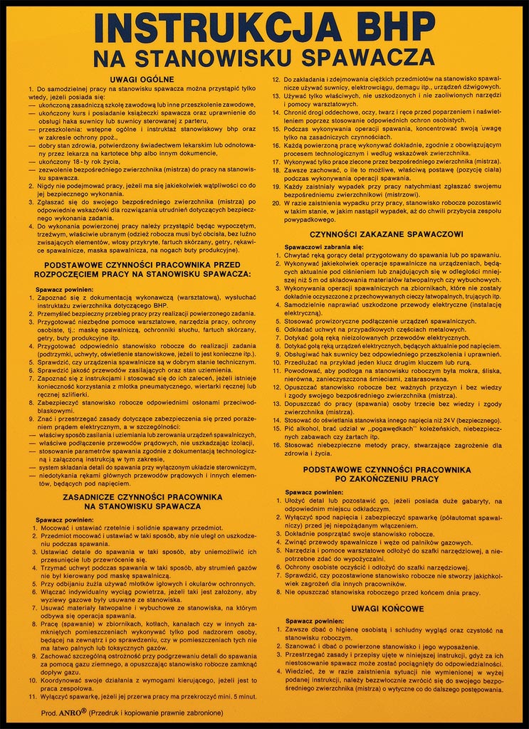 Instrukcje BHP „Instrukcja BHP na stanowisku spawacza”.