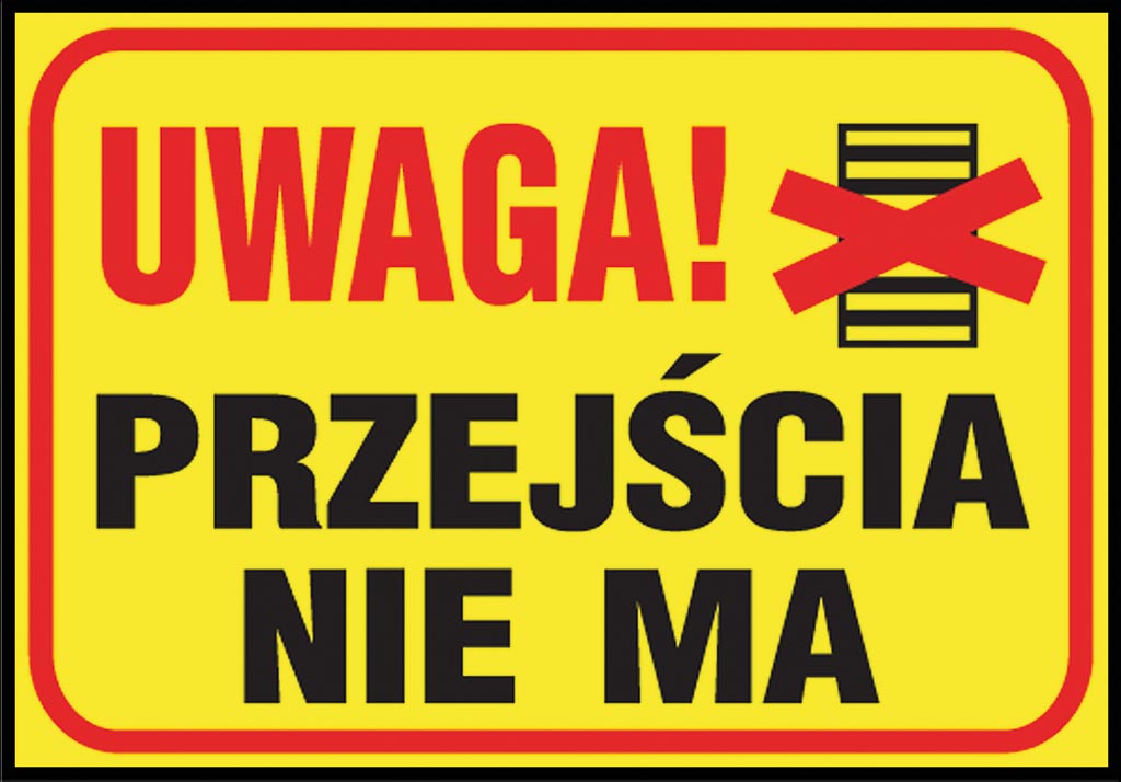 Tablice budowlane „Uwaga! Przejścia nie ma”.