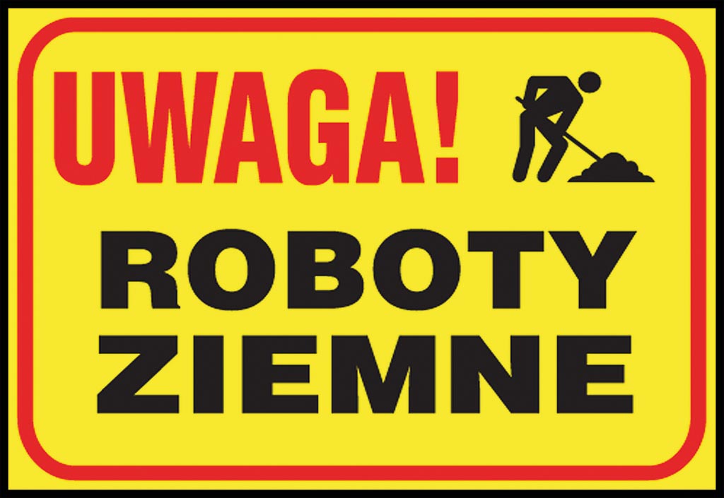 Tablice budowlane „Uwaga! Roboty ziemne”.