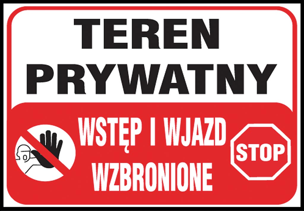 Tablice budowlane „Teren prywatny wstęp i wjazd wzbronione”.