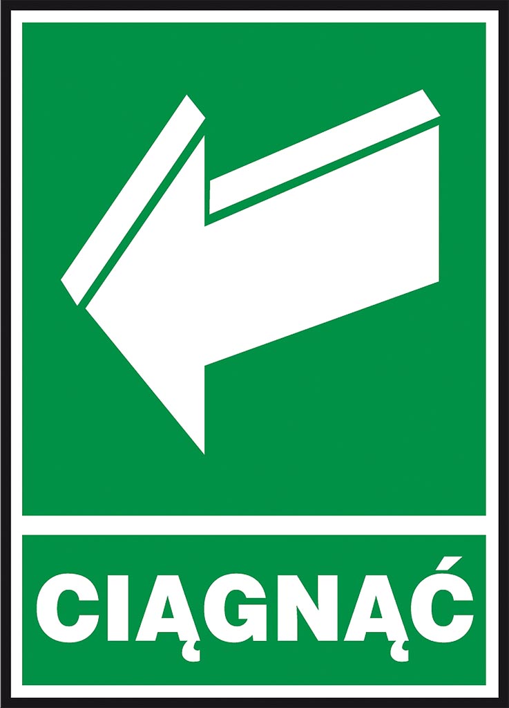 Znak ewakuacyjny „Ciągnąć aby otworzyć”
