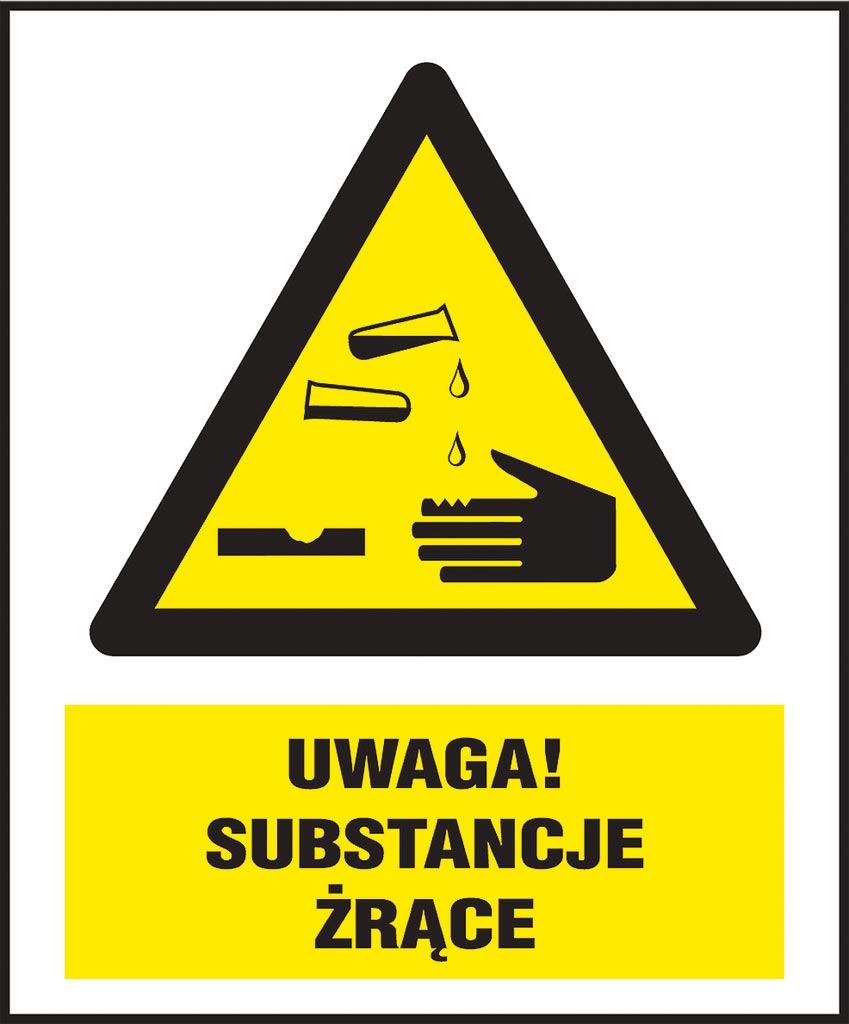 Znak BHP „Uwaga! Substancje żrące”.