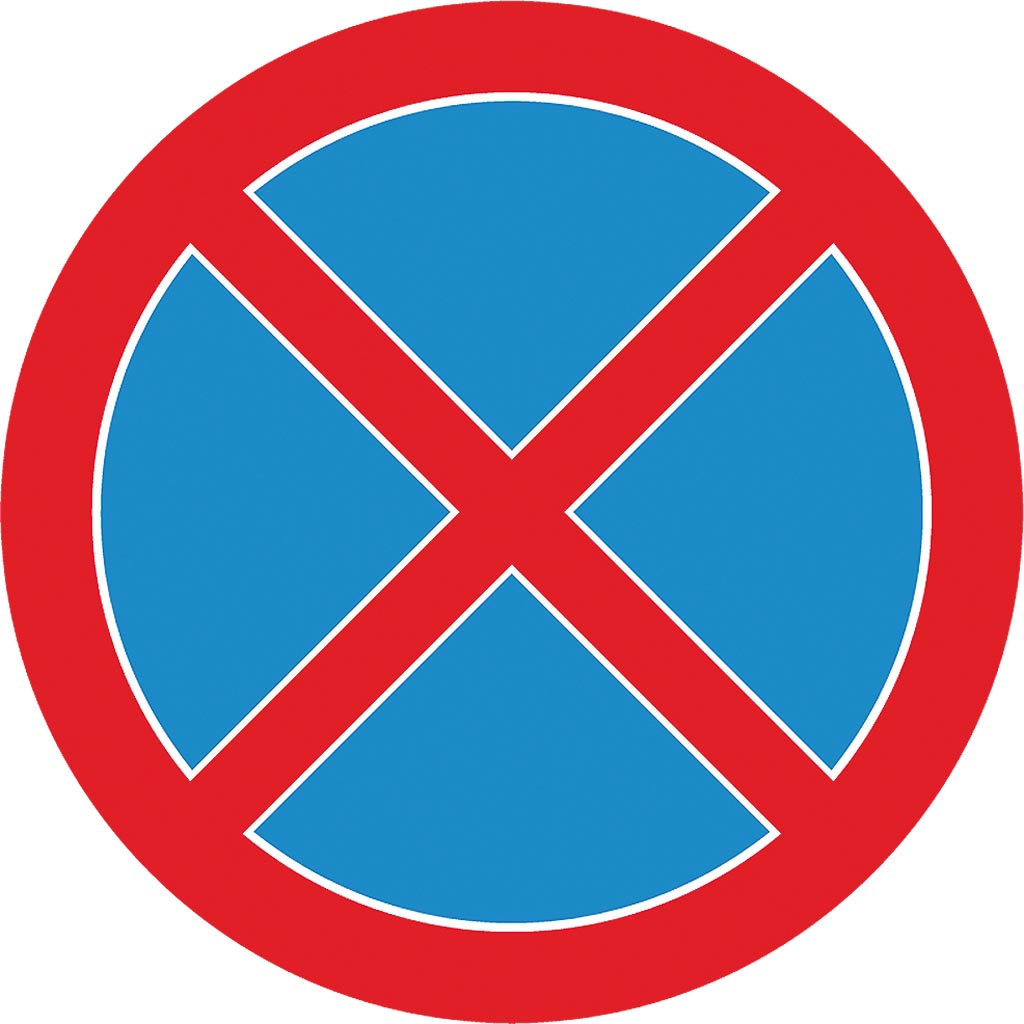 Znak na drogach wewnętrznych „Zakaz zatrzymywania się”.