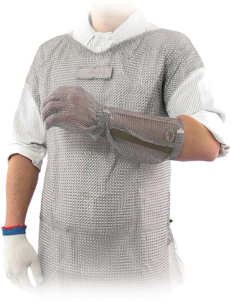 – zapewnia ochronę przed takimi urazami jak rany cięte i kłute tych części ciała, które są pokryte metalową siatką