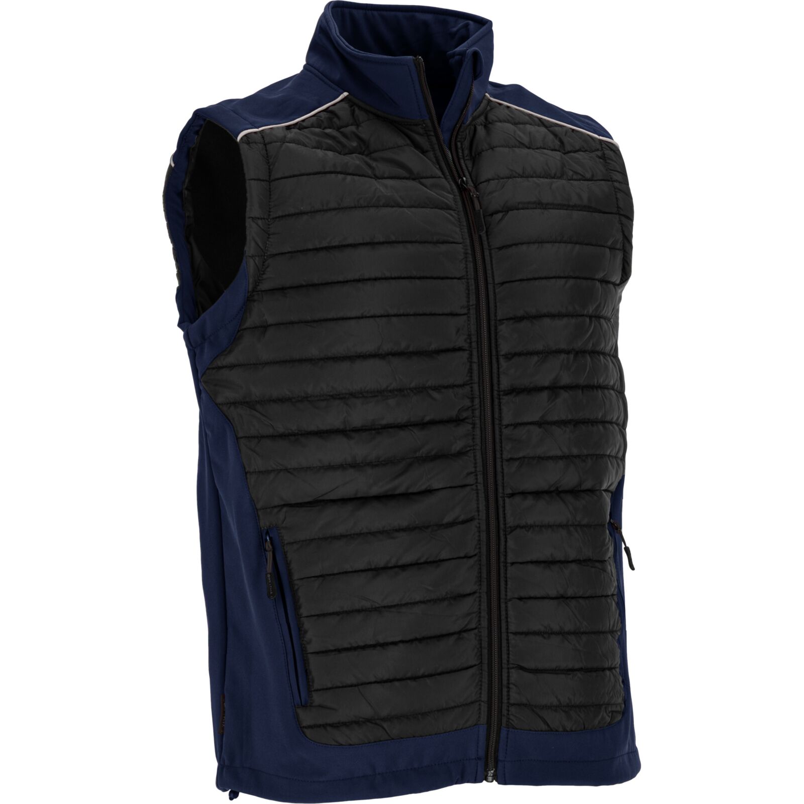 Bezrękawnik ocieplany Lahti w kolorze czarno-granatowym to funkcjonalna odzież robocza zapewniająca komfort cieplny oraz ochronę przed wiatrem i wilgocią podczas pracy w chłodnych warunkach.