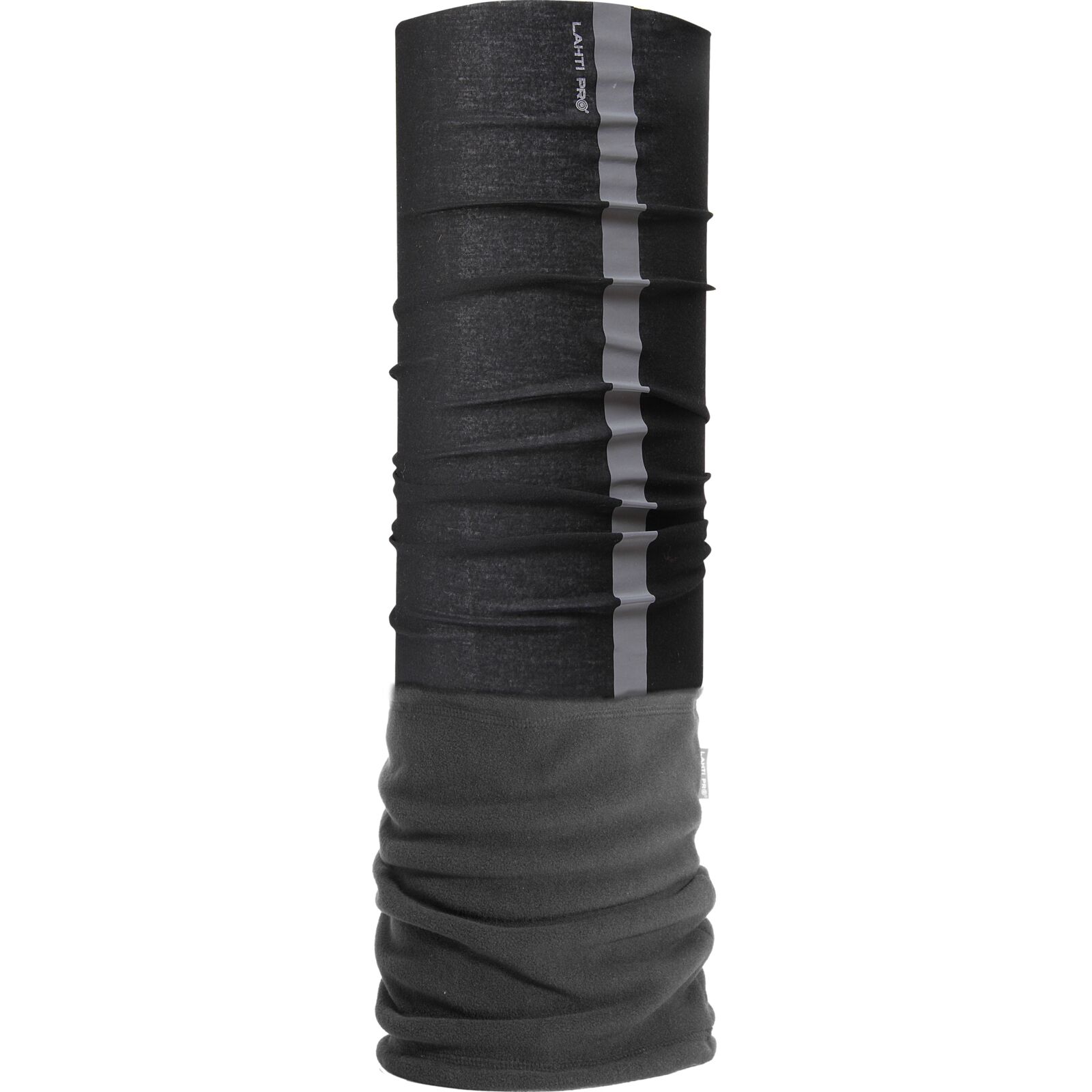 Chusta wielofunkcyjna Lahti w kolorze czarno-szarym z elementami odblaskowymi to praktyczne rozwiązanie zapewniające ochronę przed chłodem i wiatrem. Dzięki połączeniu mikrofibry i ciepłego polaru doskonale sprawdza się podczas pracy w niskich temperaturach oraz aktywności outdoorowych.