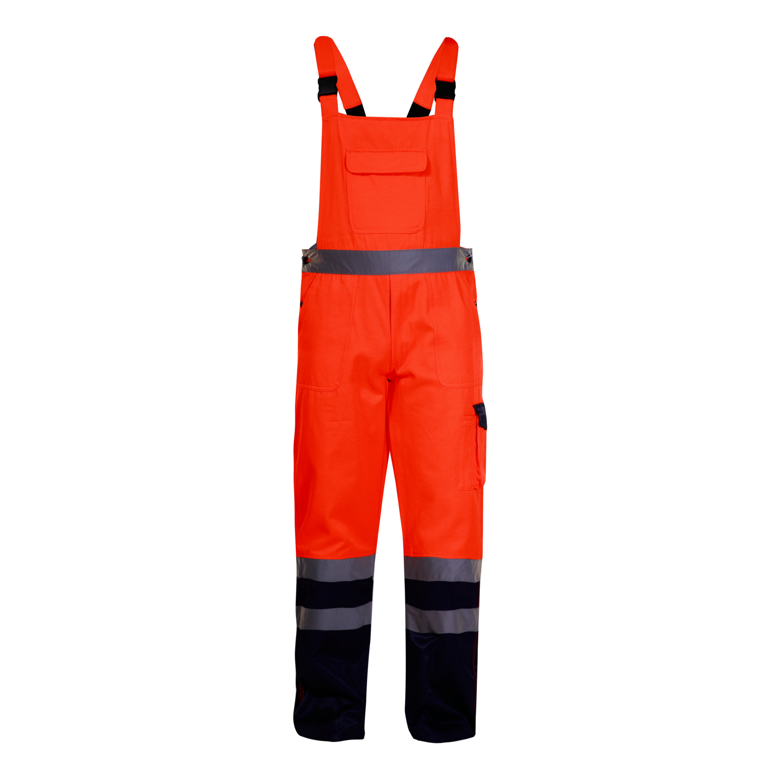 Ogrodniczki przeznaczone do prac drogowych, budowlanych, montażowych, magazynowych i transportowych, gdzie wymagana jest wysoka widzialność oraz trwałość odzieży roboczej.
