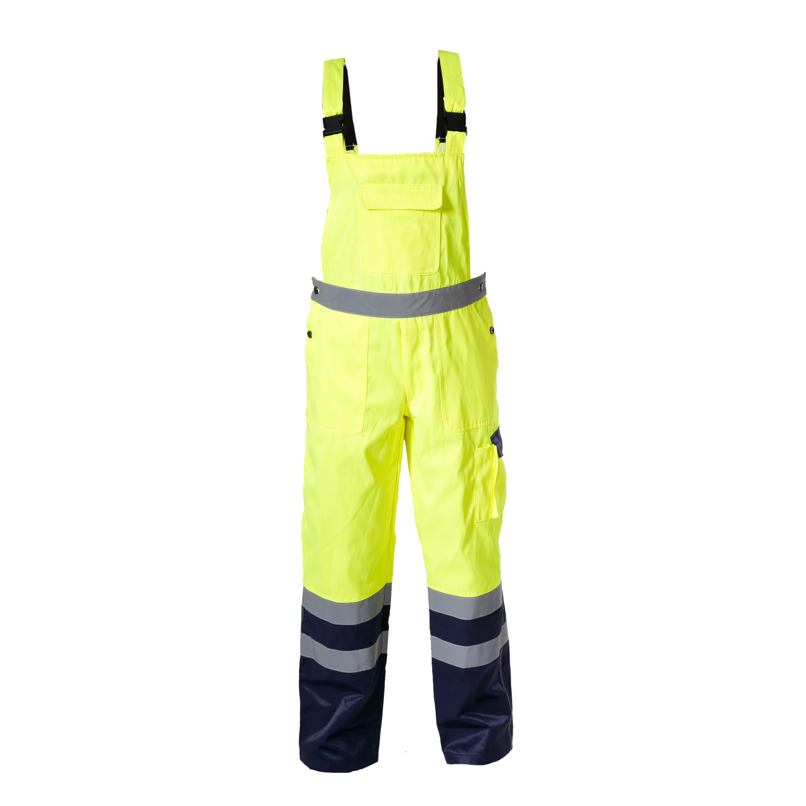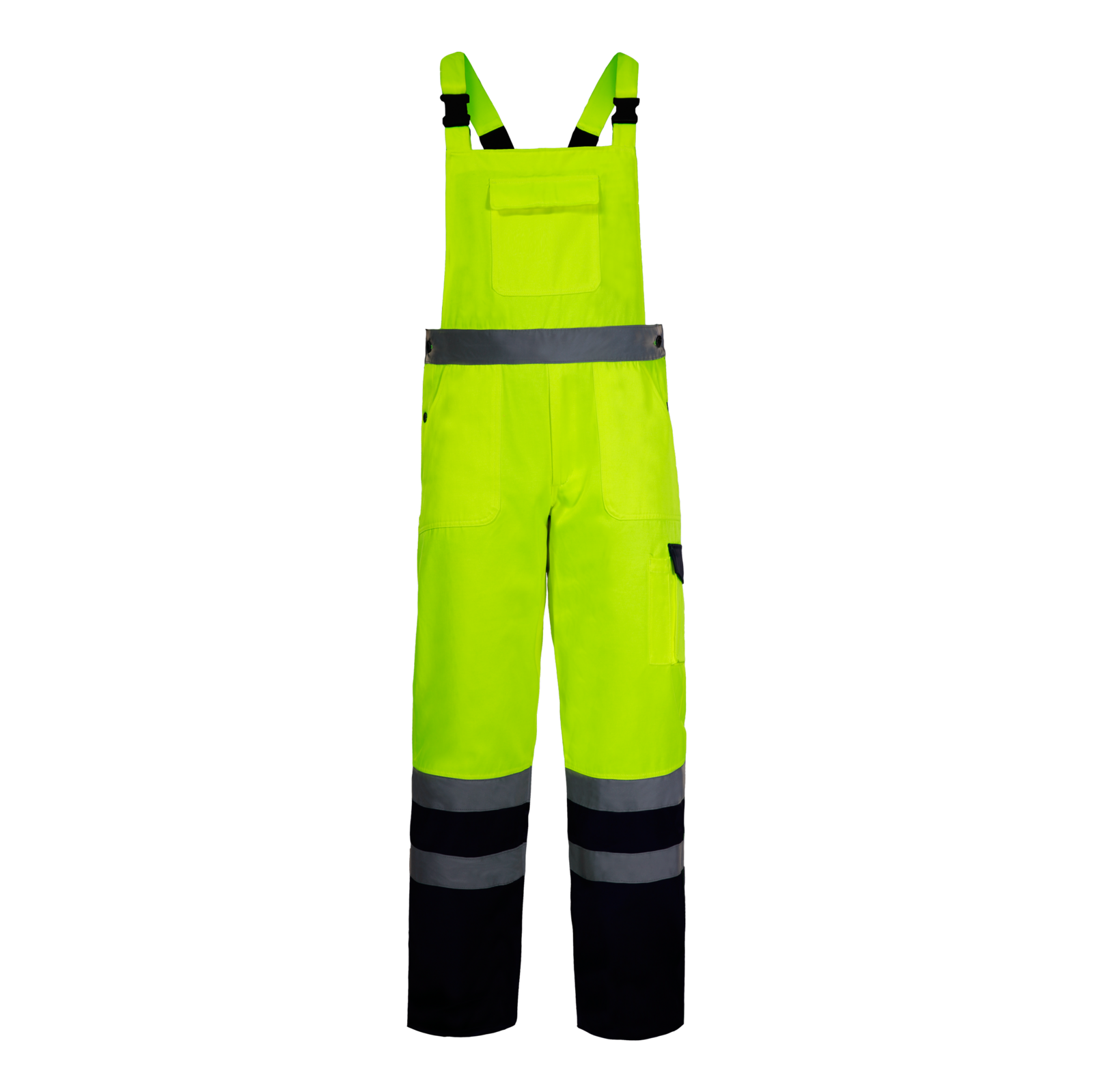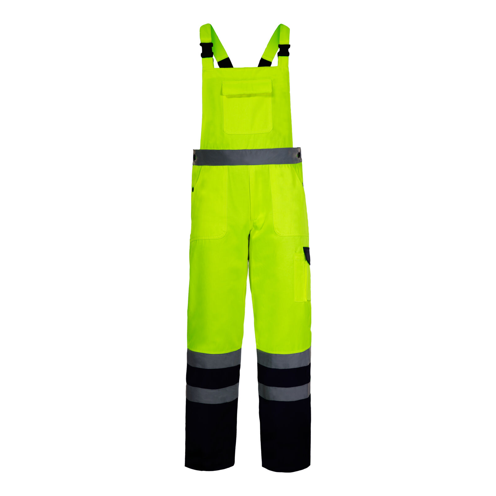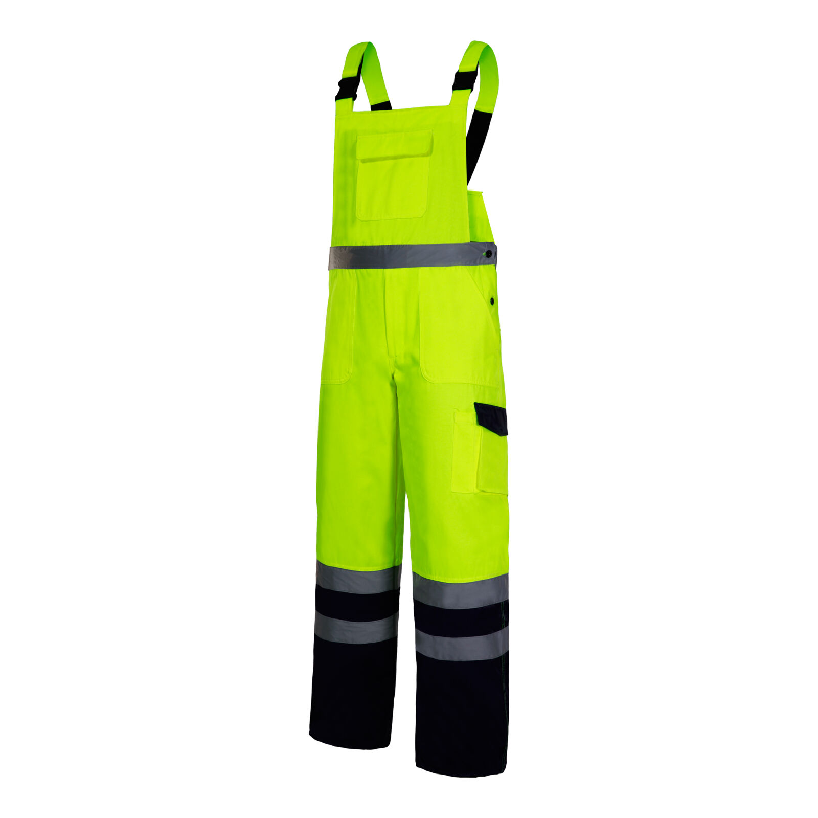 Ogrodniczki przeznaczone do prac drogowych, budowlanych, montażowych, magazynowych i transportowych, gdzie wymagana jest wysoka widzialność oraz trwałość odzieży roboczej.