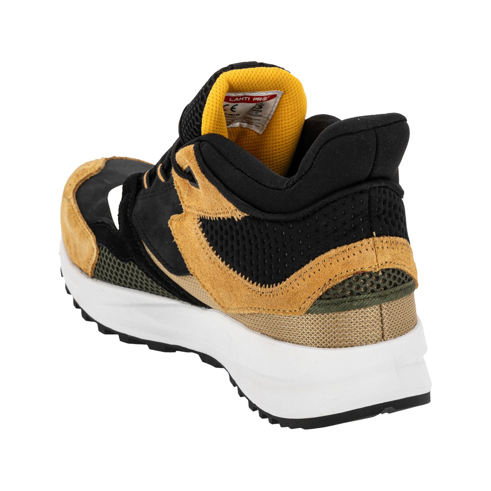 Obuwie posiada kompozytowy podnosek chroniący palce stopy, właściwości antyelektrostatyczne oraz absorpcję energii w części piętowej. Zamknięty obszar pięty stabilizuje stopę, a brak elementów metalowych czyni buty lekkimi i komfortowymi w noszeniu.
