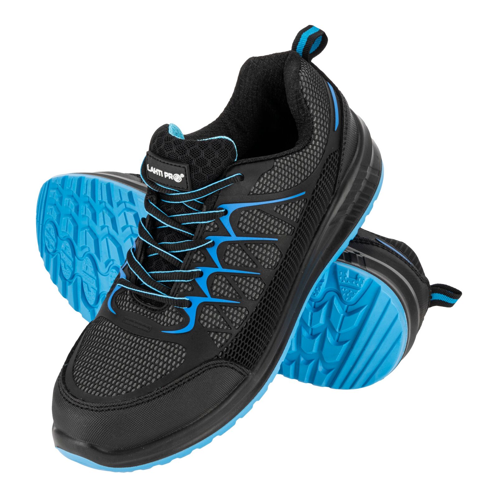 Półbuty posiadają stalowy podnosek i stalową wkładkę antyprzebiciową, właściwości antyelektrostatyczne, absorpcję energii w części piętowej oraz zamknięty obszar pięty, gwarantując pełną ochronę stóp w środowisku pracy.