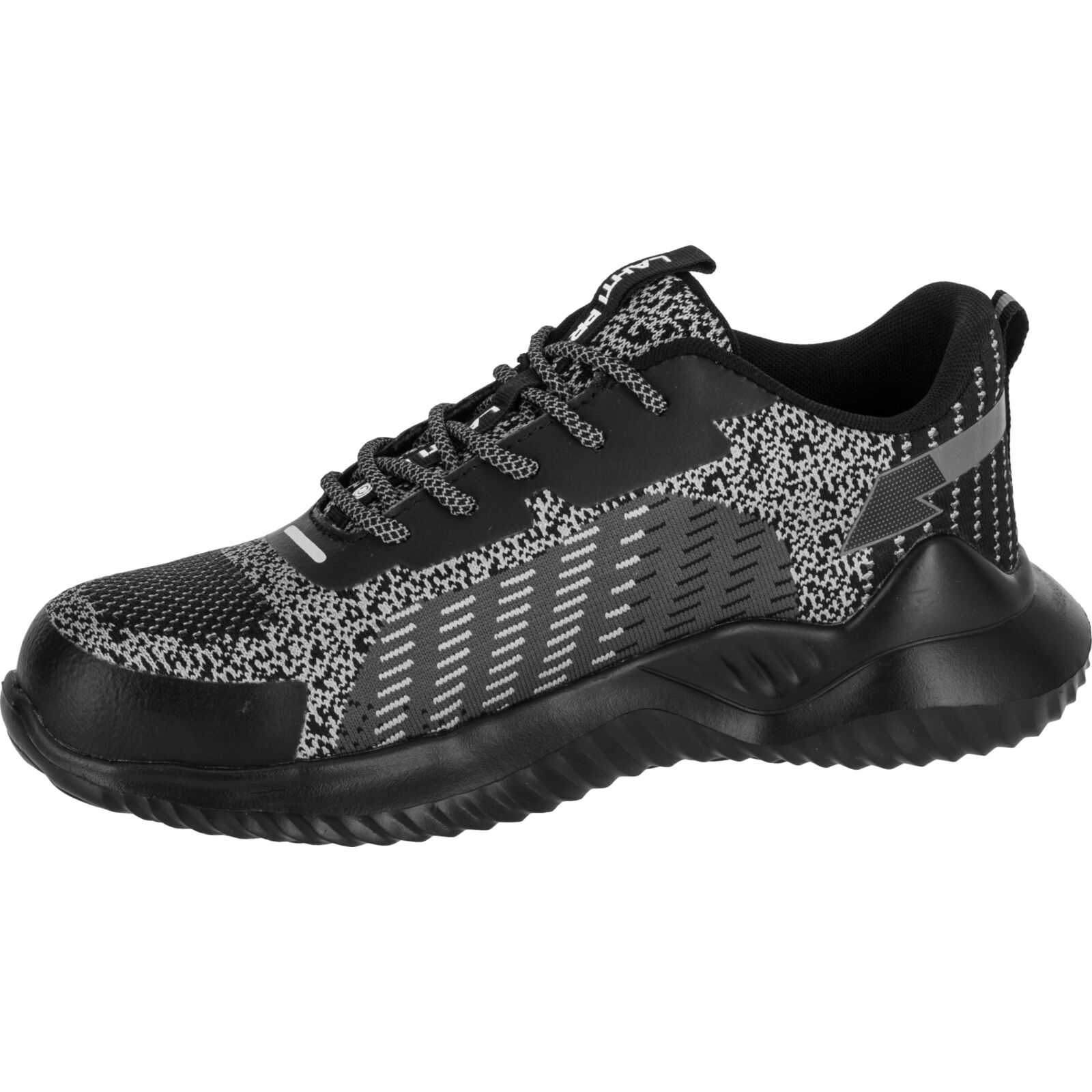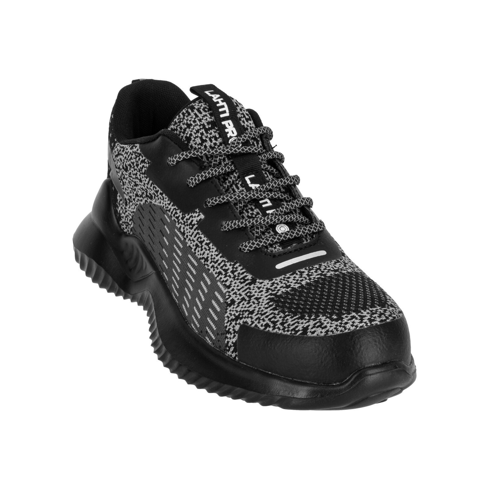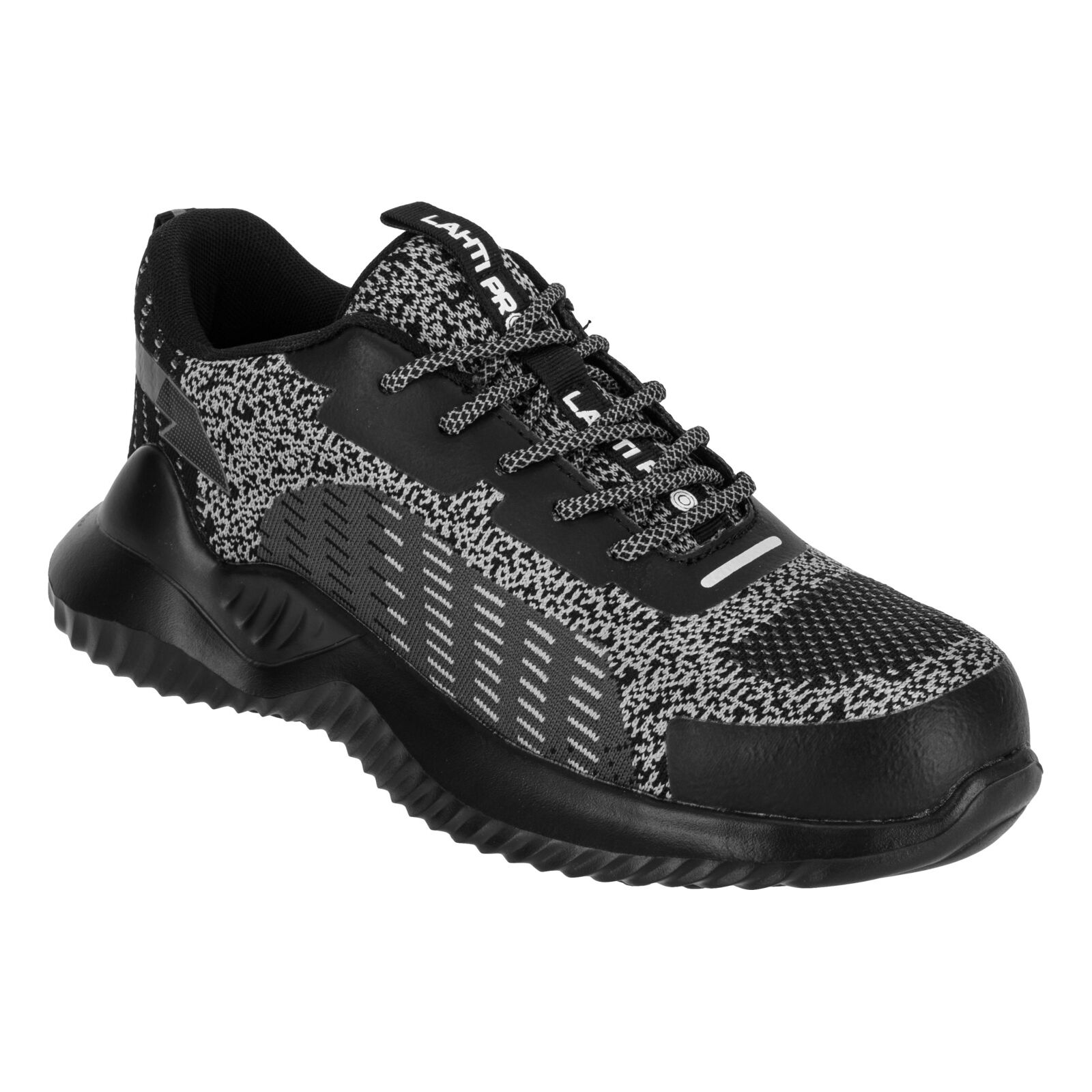 Półbuty posiadają stalowy podnosek chroniący palce stóp, właściwości antyelektrostatyczne oraz absorpcję energii w części piętowej. Elementy odblaskowe w sznurowadłach i wstawki poprawiają widoczność i bezpieczeństwo użytkownika