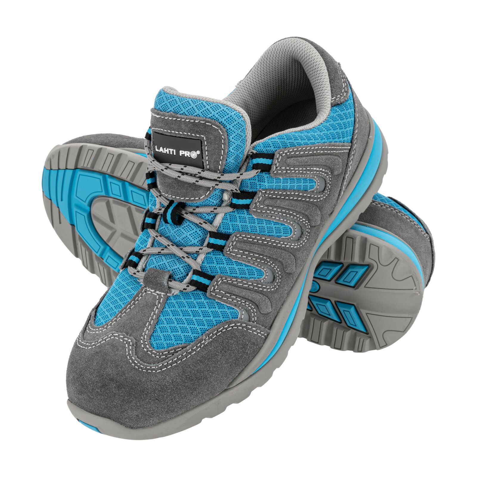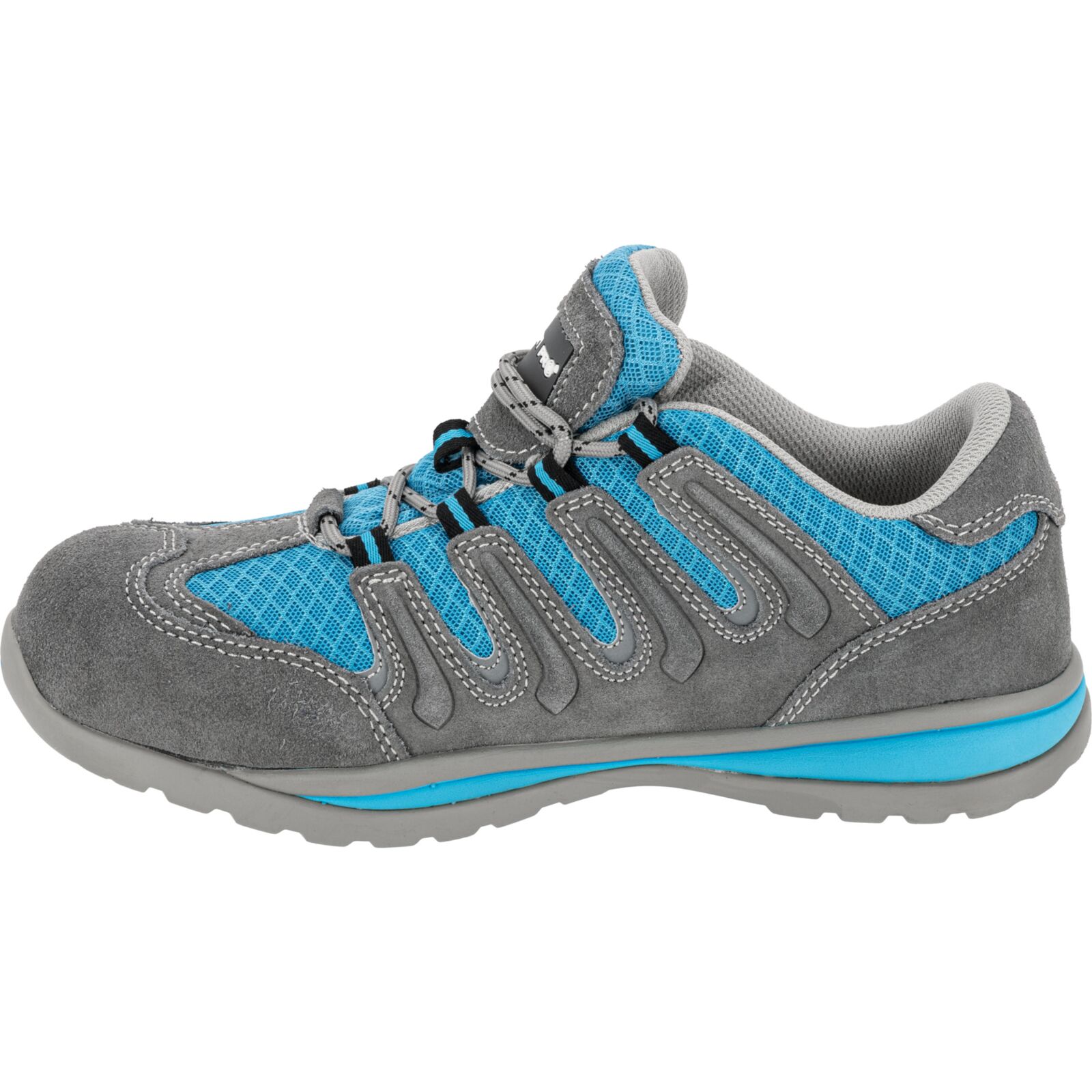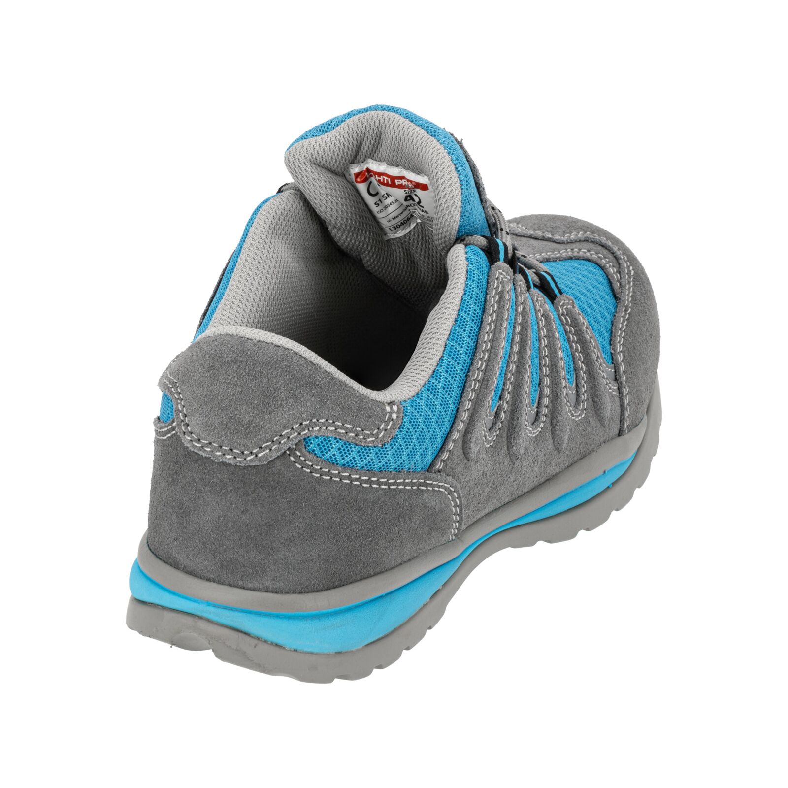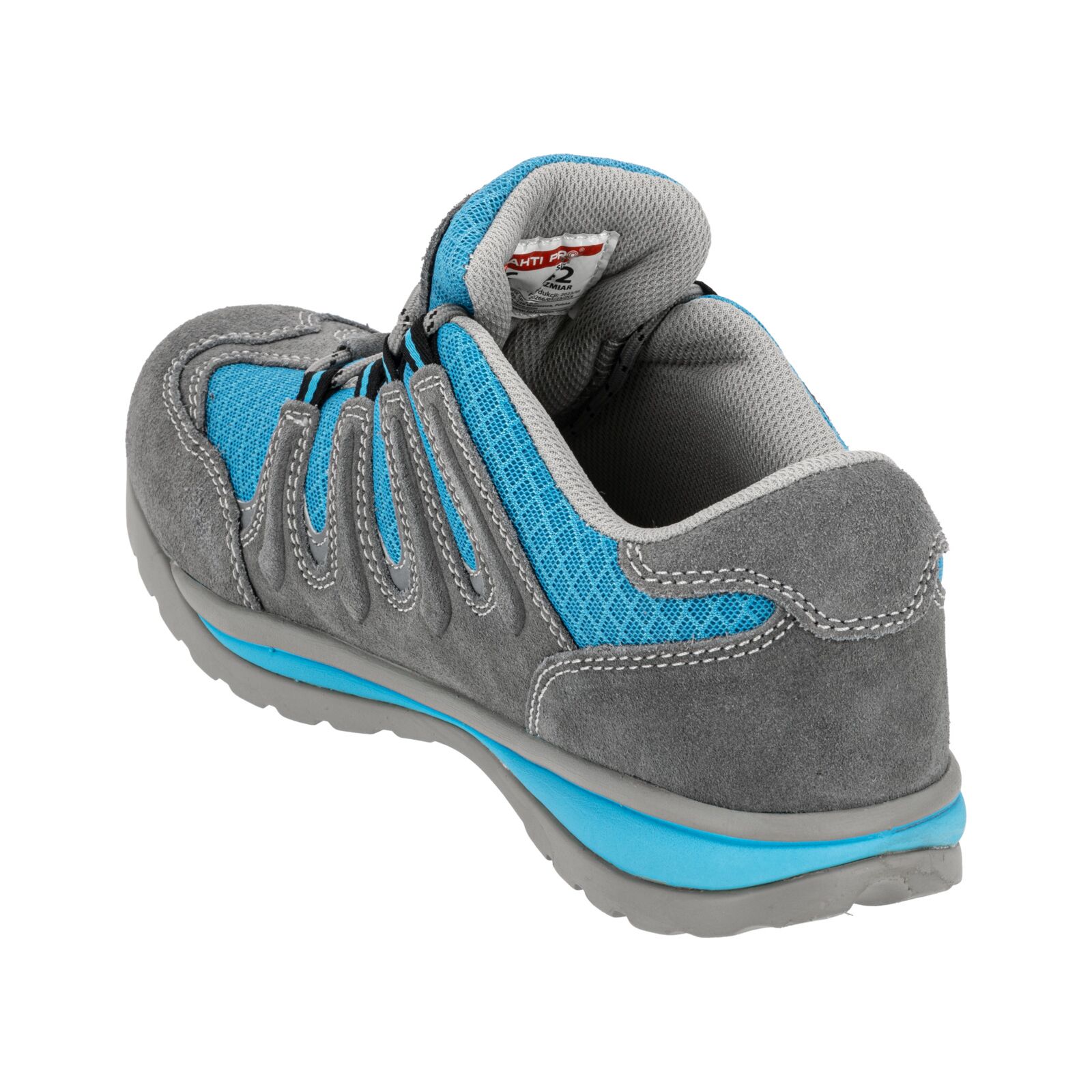 Podnosek stalowy chroni palce stóp przed uderzeniami, a zamknięty obszar pięty stabilizuje stopę. Obuwie posiada właściwości antyelektrostatyczne i absorpcję energii w części piętowej. Dodatkowe elementy odblaskowe zwiększają widoczność użytkowniczki w słabo oświetlonych miejscach.