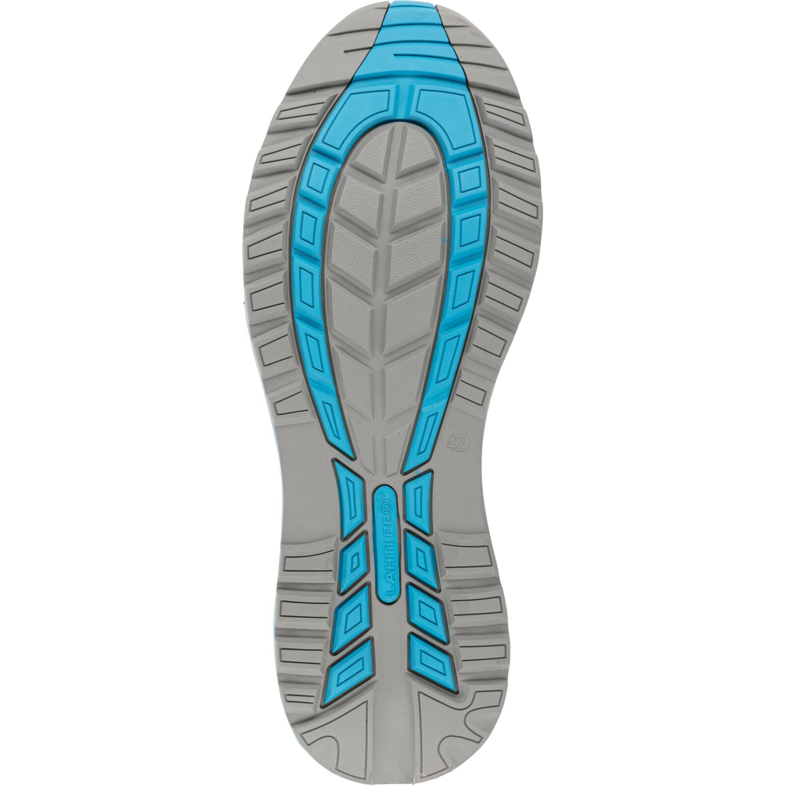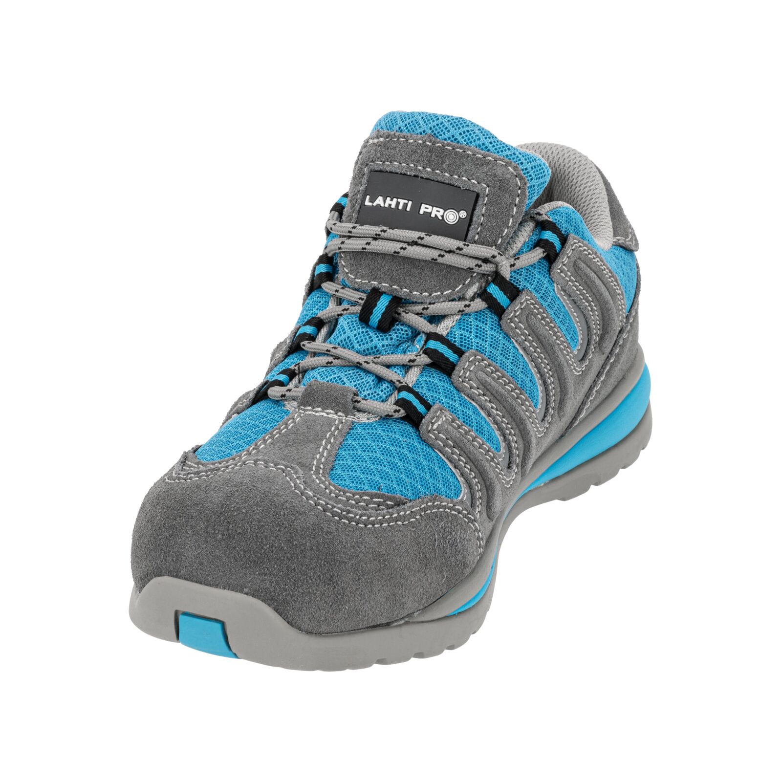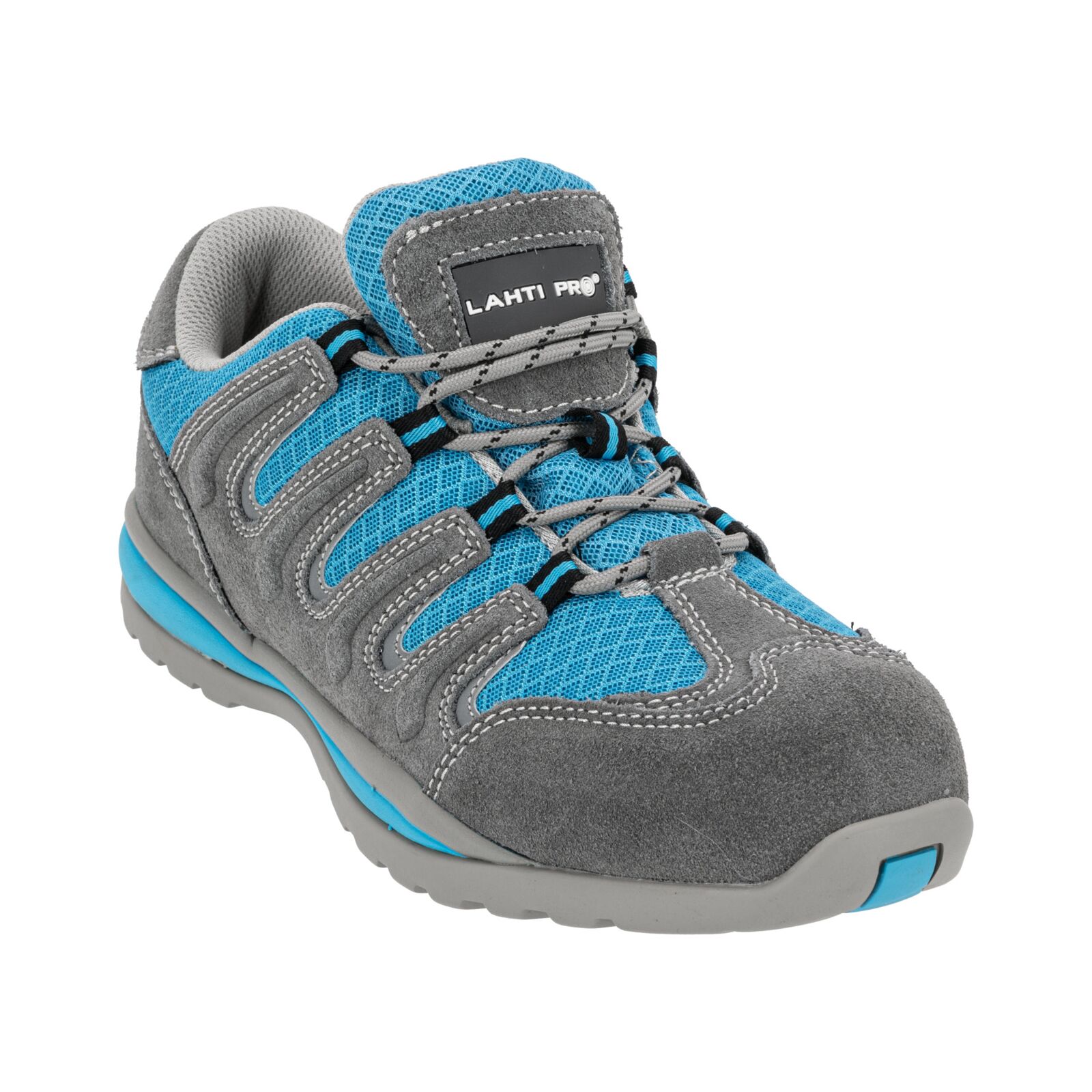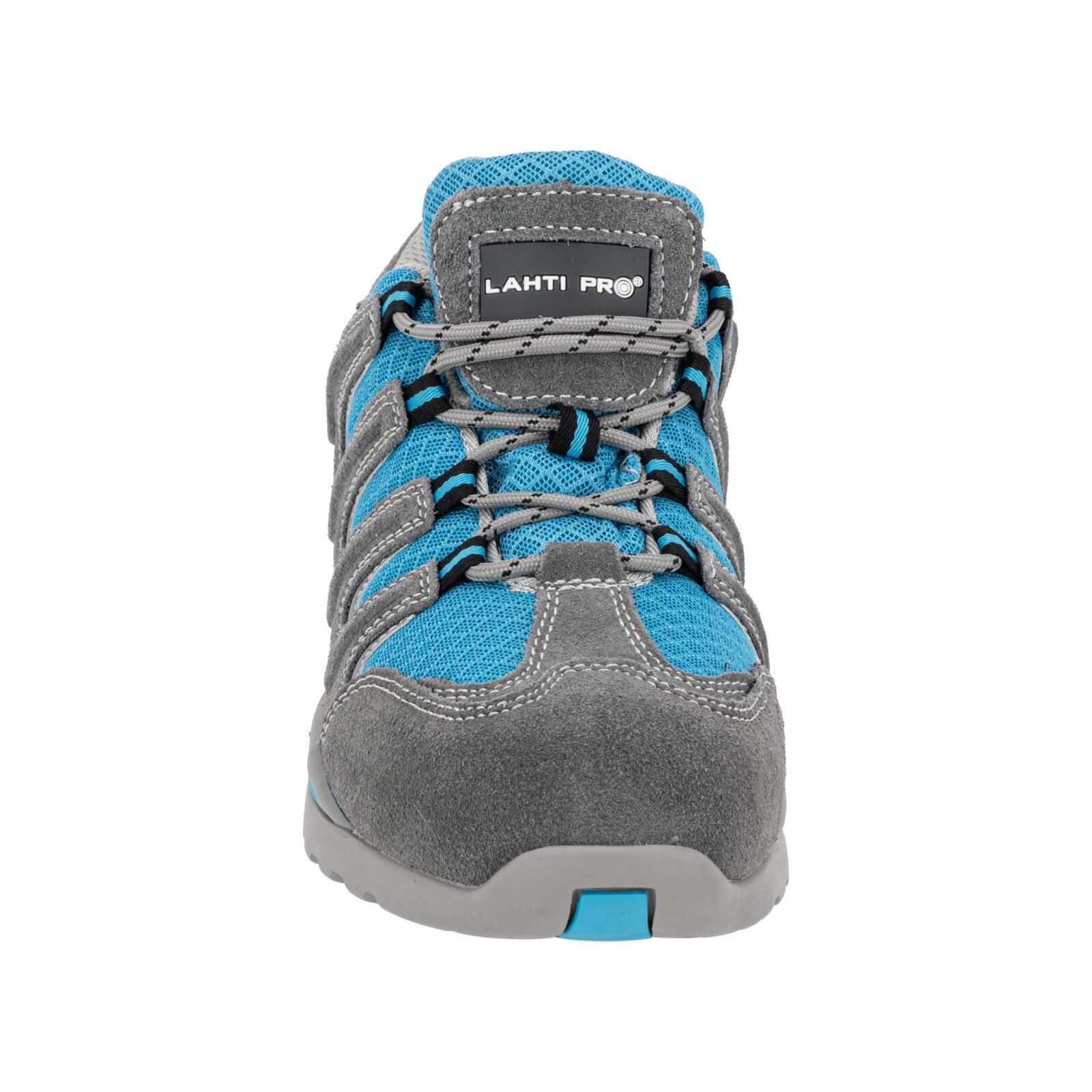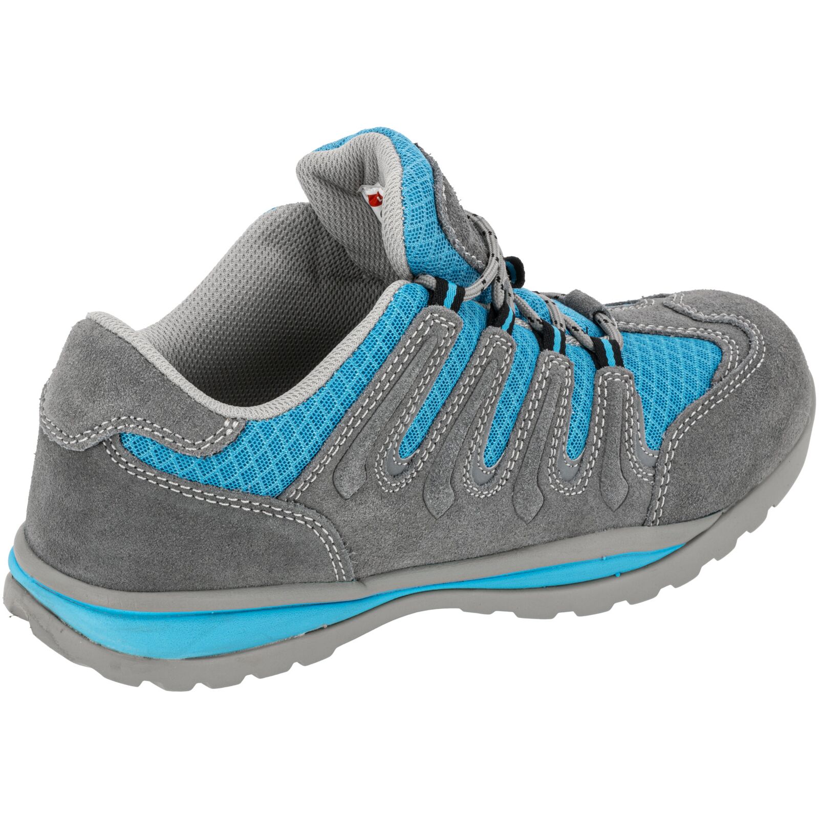 Podnosek stalowy chroni palce stóp przed uderzeniami, a zamknięty obszar pięty stabilizuje stopę. Obuwie posiada właściwości antyelektrostatyczne i absorpcję energii w części piętowej. Dodatkowe elementy odblaskowe zwiększają widoczność użytkowniczki w słabo oświetlonych miejscach.