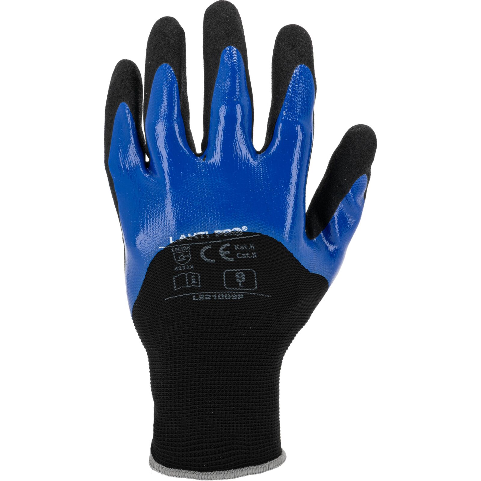 Część chwytna oraz połowa części wierzchniej powlekane podwójną warstwą nitrylu, co zapewnia: