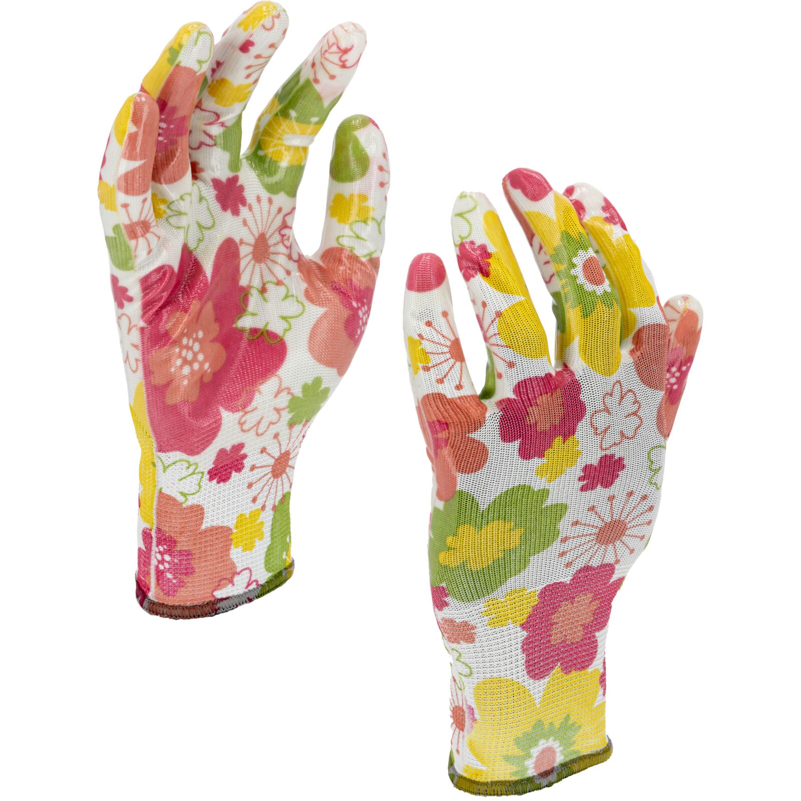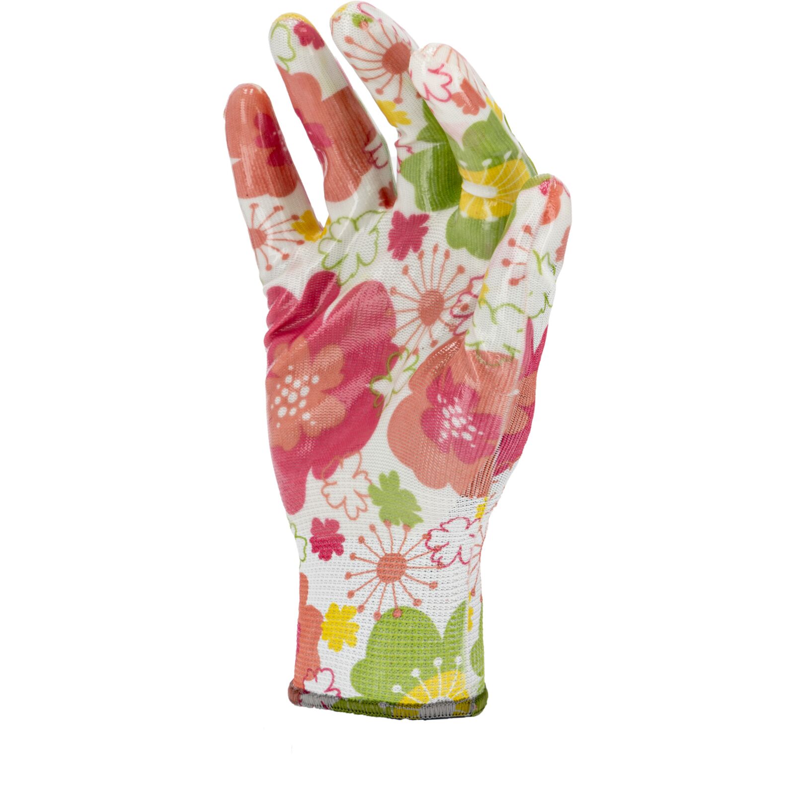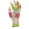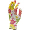 Wytrzymałe i wygodne rękawice ochronne o atrakcyjnym, różowym wzorze w kwiatki. Przeznaczone do prac wymagających dobrej chwytności oraz odporności na smary i oleje. Produkt pakowany na kartę.