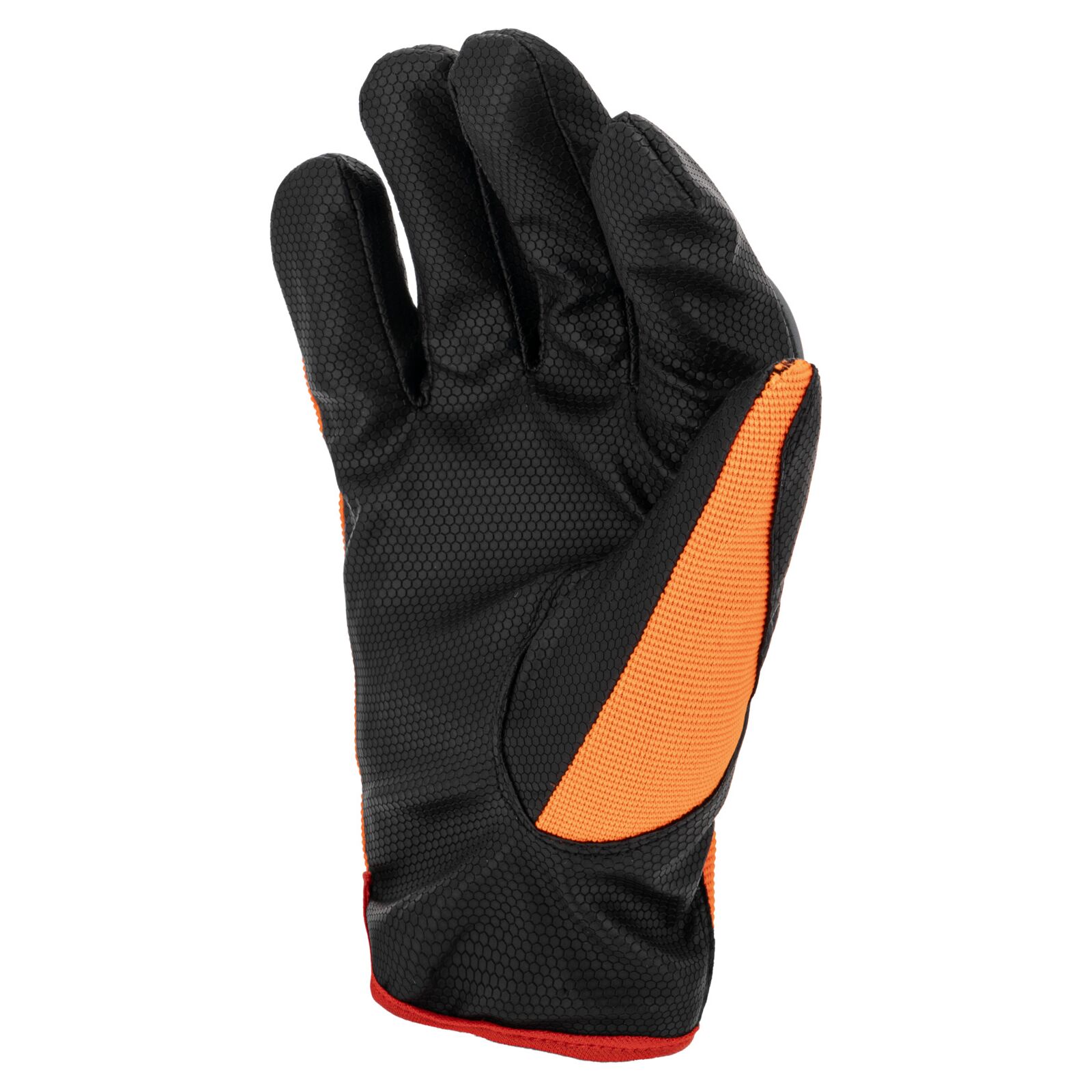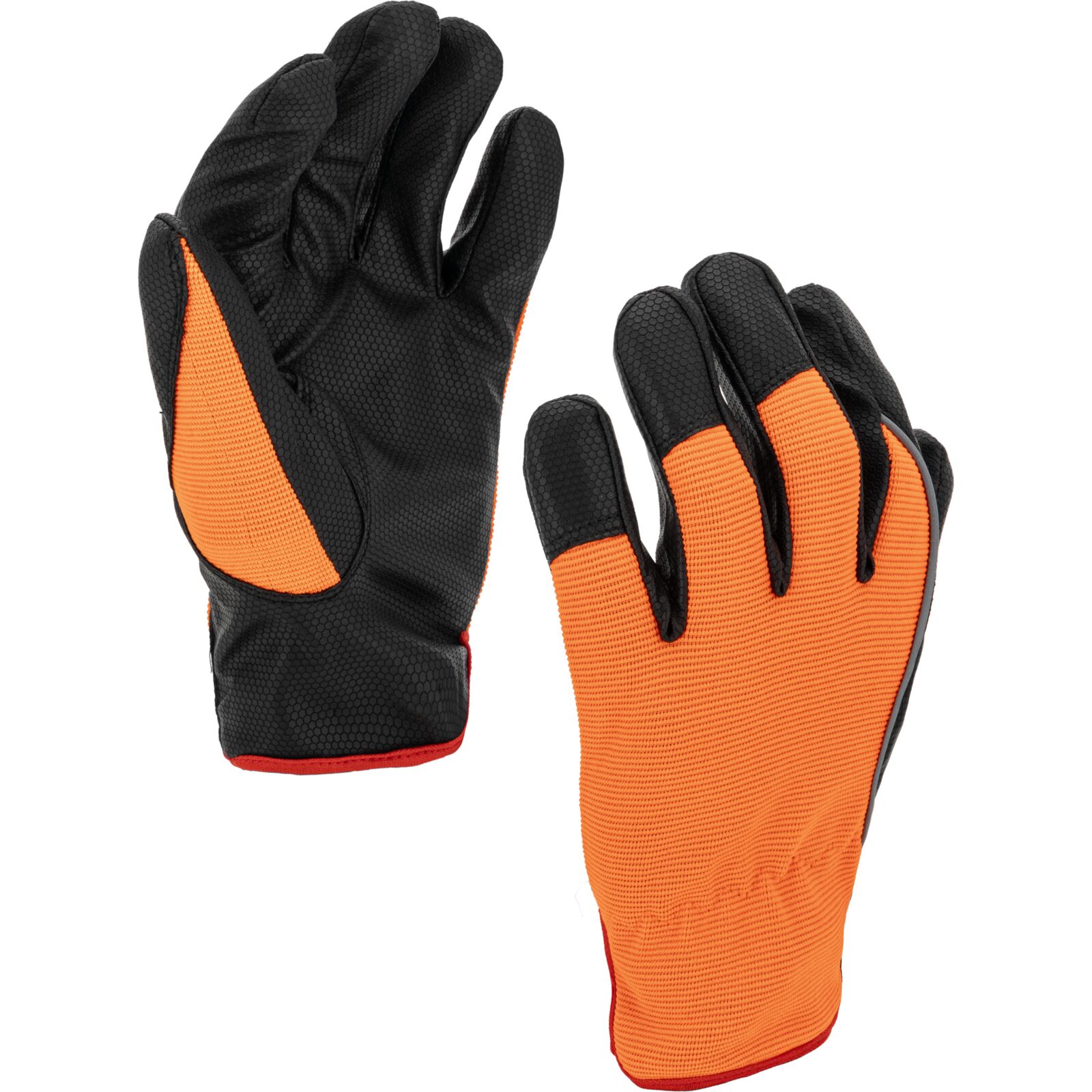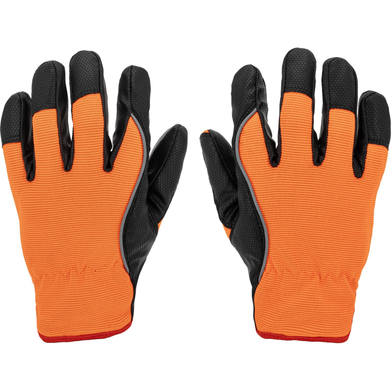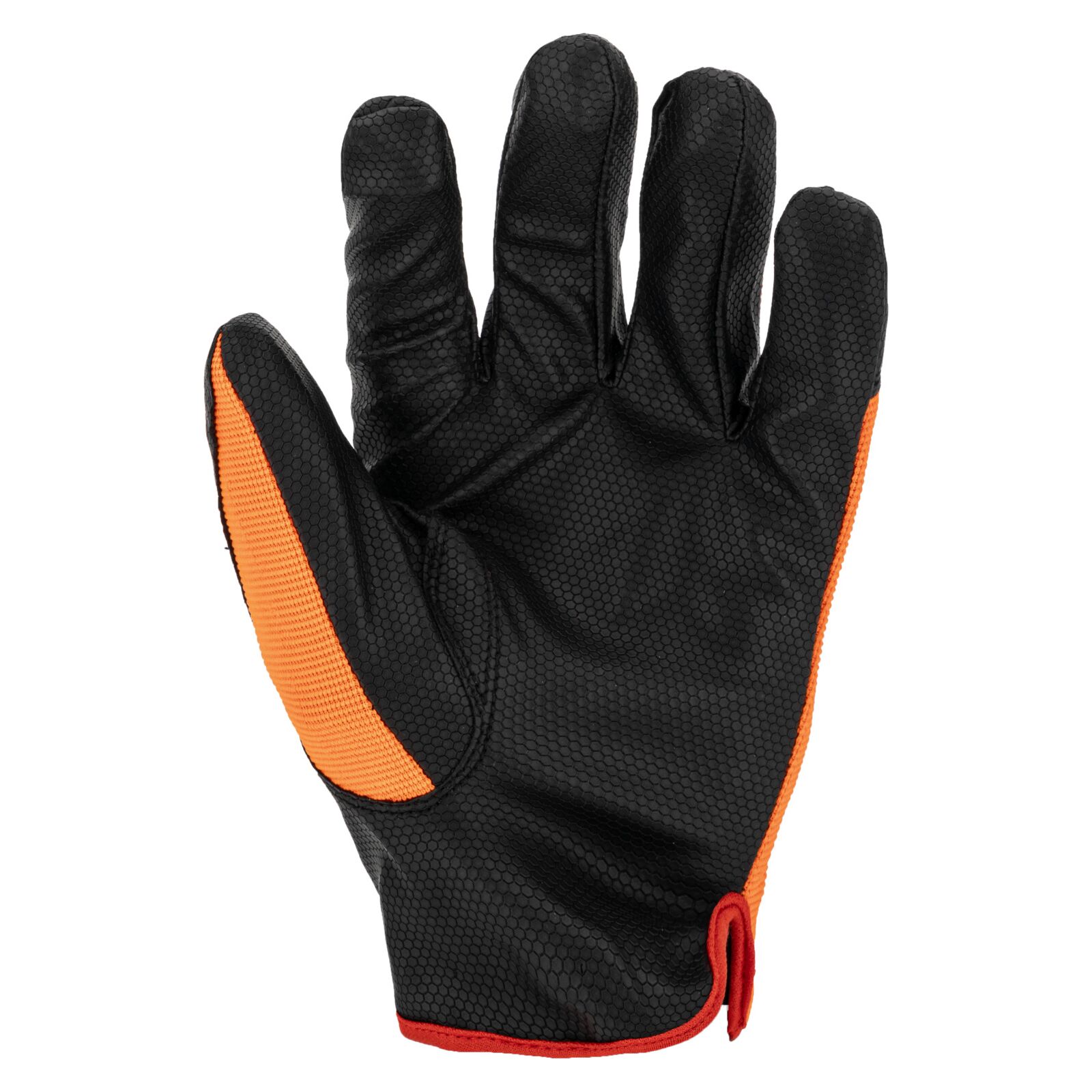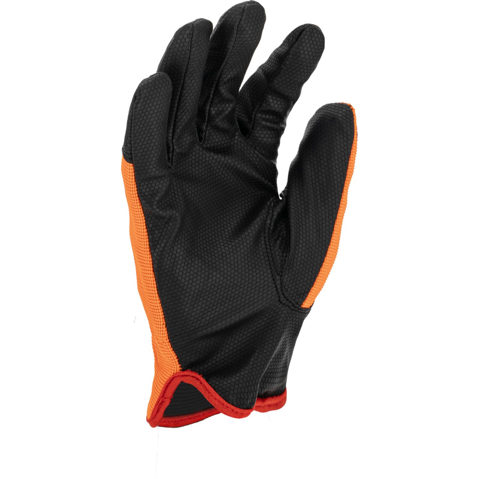 Część chwytna została wykonana z jednego kawałka materiału, co zwiększa trwałość rękawicy i ogranicza ryzyko przetarć w najbardziej obciążonych miejscach. Wierzchnia część wykonana jest z elastycznego materiału o podwyższonej widoczności, który zapewnia dobre dopasowanie do dłoni oraz poprawia bezpieczeństwo pracy.