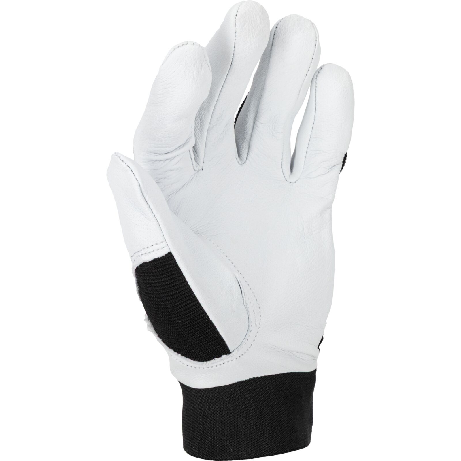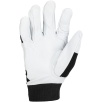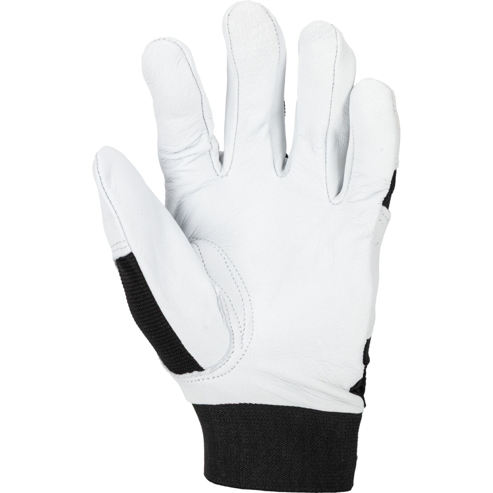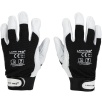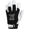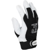 Część chwytna została wykonana z jednego kawałka skóry, co zwiększa wytrzymałość rękawicy i ogranicza zużycie w najbardziej obciążonych miejscach. Wierzchnia część wykonana z elastycznego materiału poprawia dopasowanie do dłoni oraz swobodę ruchów podczas pracy.