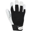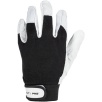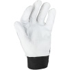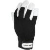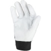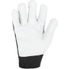 Część chwytna została wykonana z jednego kawałka skóry, co zwiększa trwałość rękawicy i ogranicza zużycie w najbardziej obciążonych miejscach. Zastosowanie bawełny i elastanu poprawia dopasowanie do dłoni oraz komfort pracy.