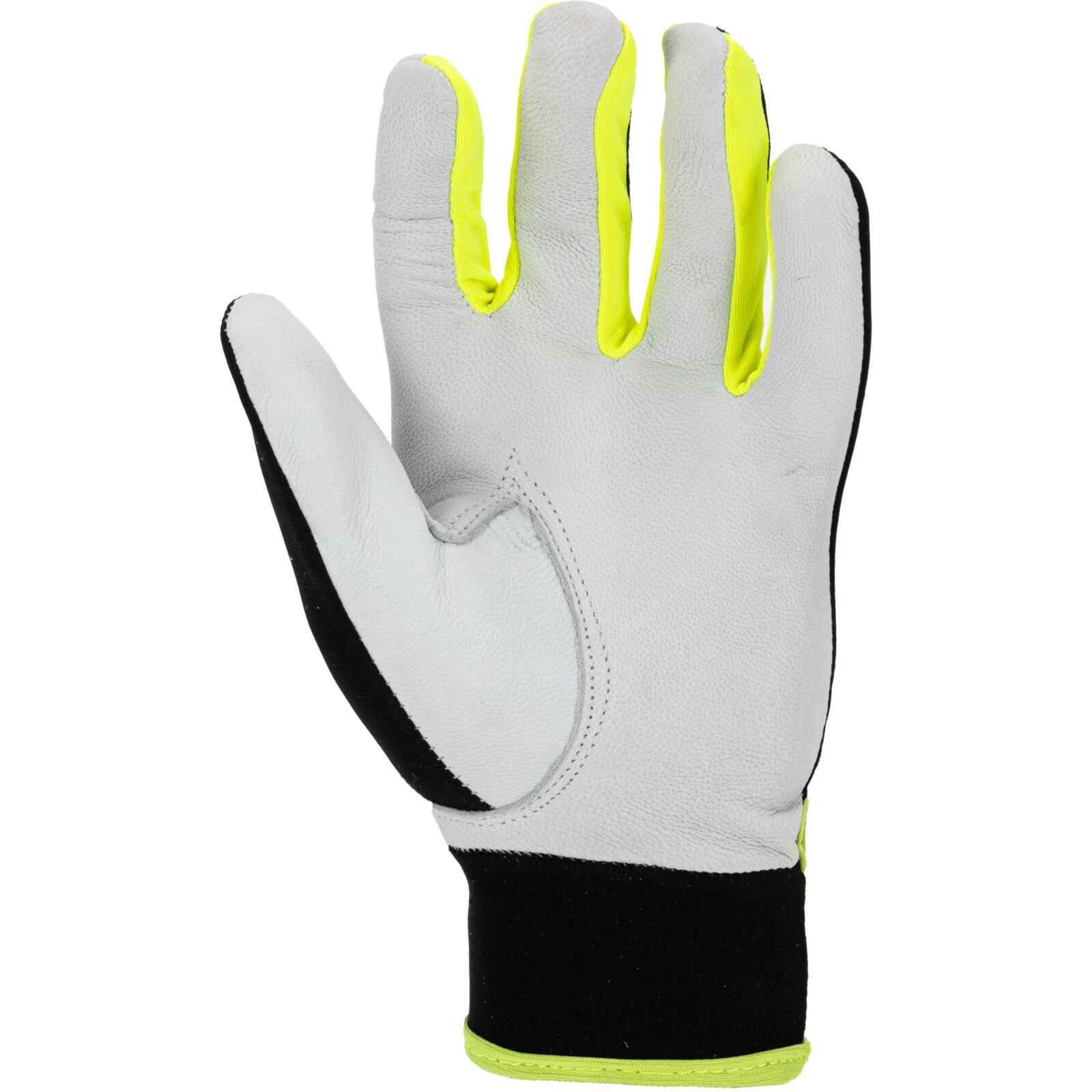 Część chwytna została wykonana z jednego kawałka skóry, co zwiększa wytrzymałość rękawicy i ogranicza zużycie w najbardziej obciążonych miejscach. Wstawki z kontrastowego materiału nadają rękawicom nowoczesny wygląd i poprawiają ich widoczność.