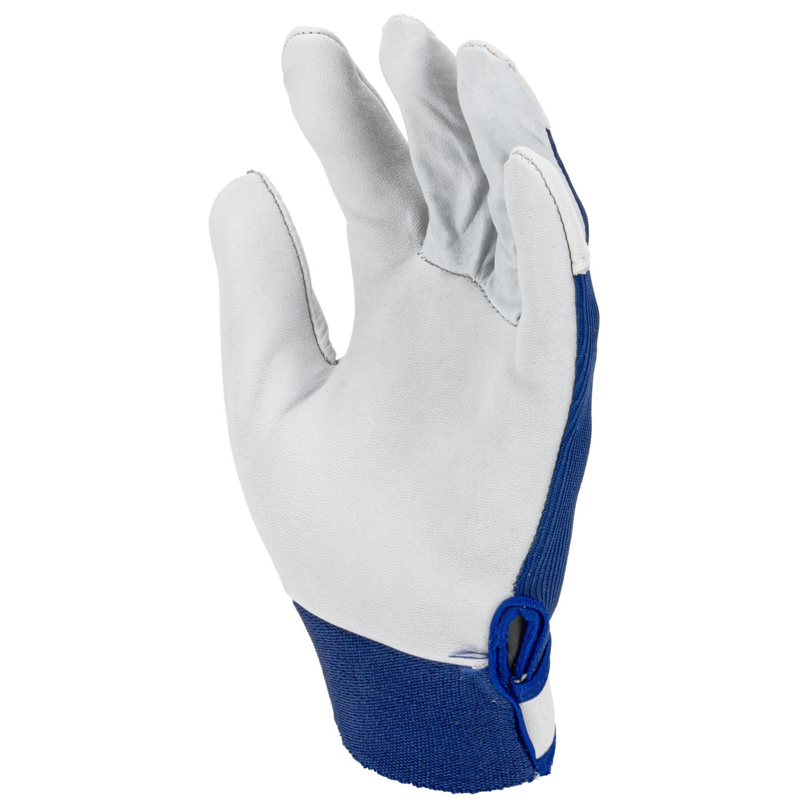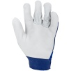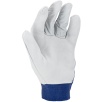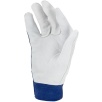 Część chwytna została wykonana z jednego kawałka skóry, co zwiększa trwałość rękawicy i ogranicza zużycie w najbardziej obciążonych miejscach. Elastyczny ściągacz z zapięciem na rzep umożliwia precyzyjne dopasowanie do nadgarstka oraz stabilne utrzymanie rękawicy podczas pracy.