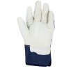 Część chwytna została wykonana z jednego kawałka skóry, co zwiększa odporność na przetarcia i podnosi trwałość rękawicy w miejscach najbardziej narażonych na zużycie. Naturalna skóra kozia gwarantuje dobry chwyt oraz precyzję podczas wykonywania prac manualnych.