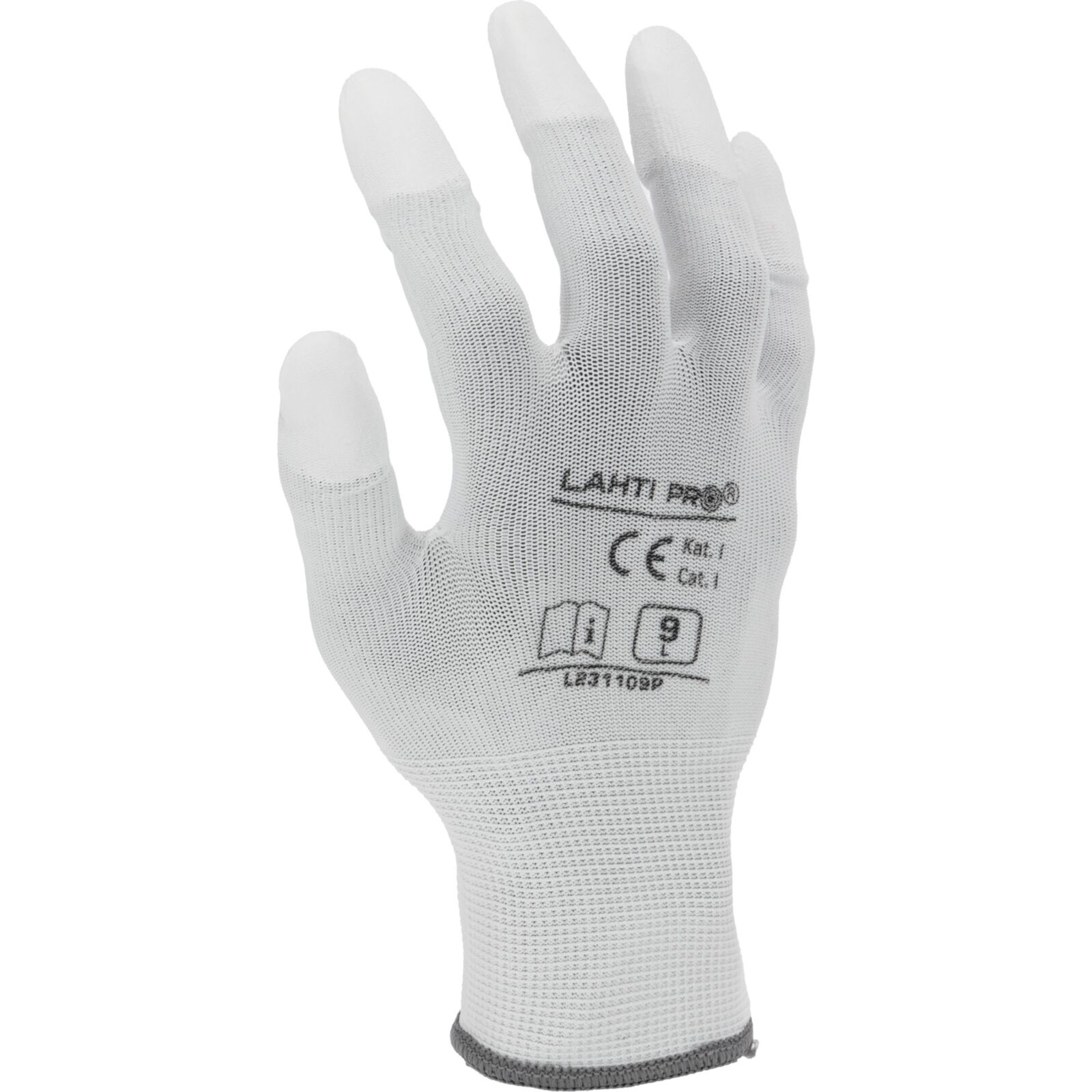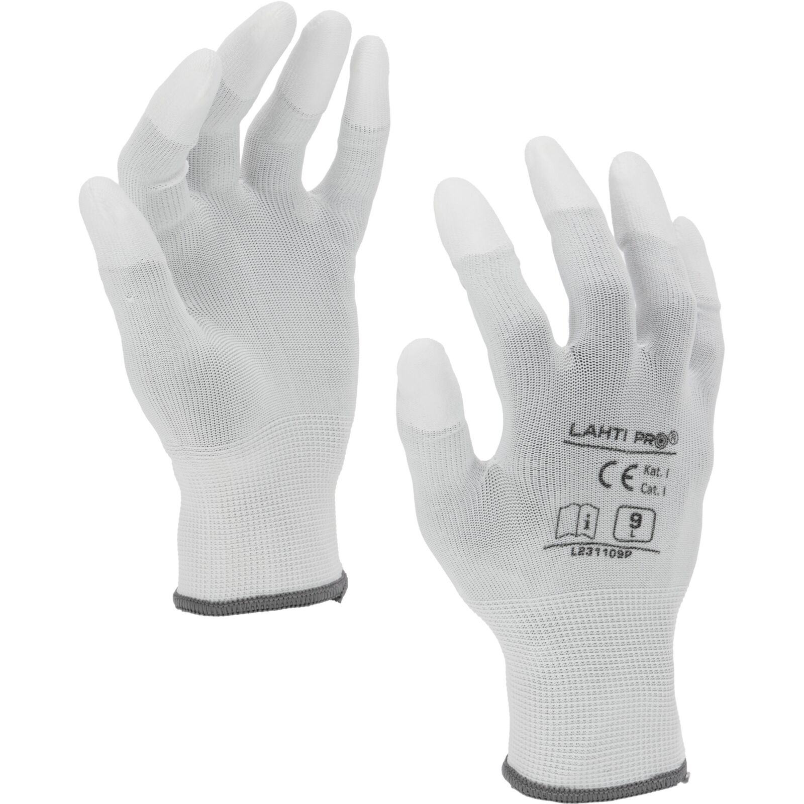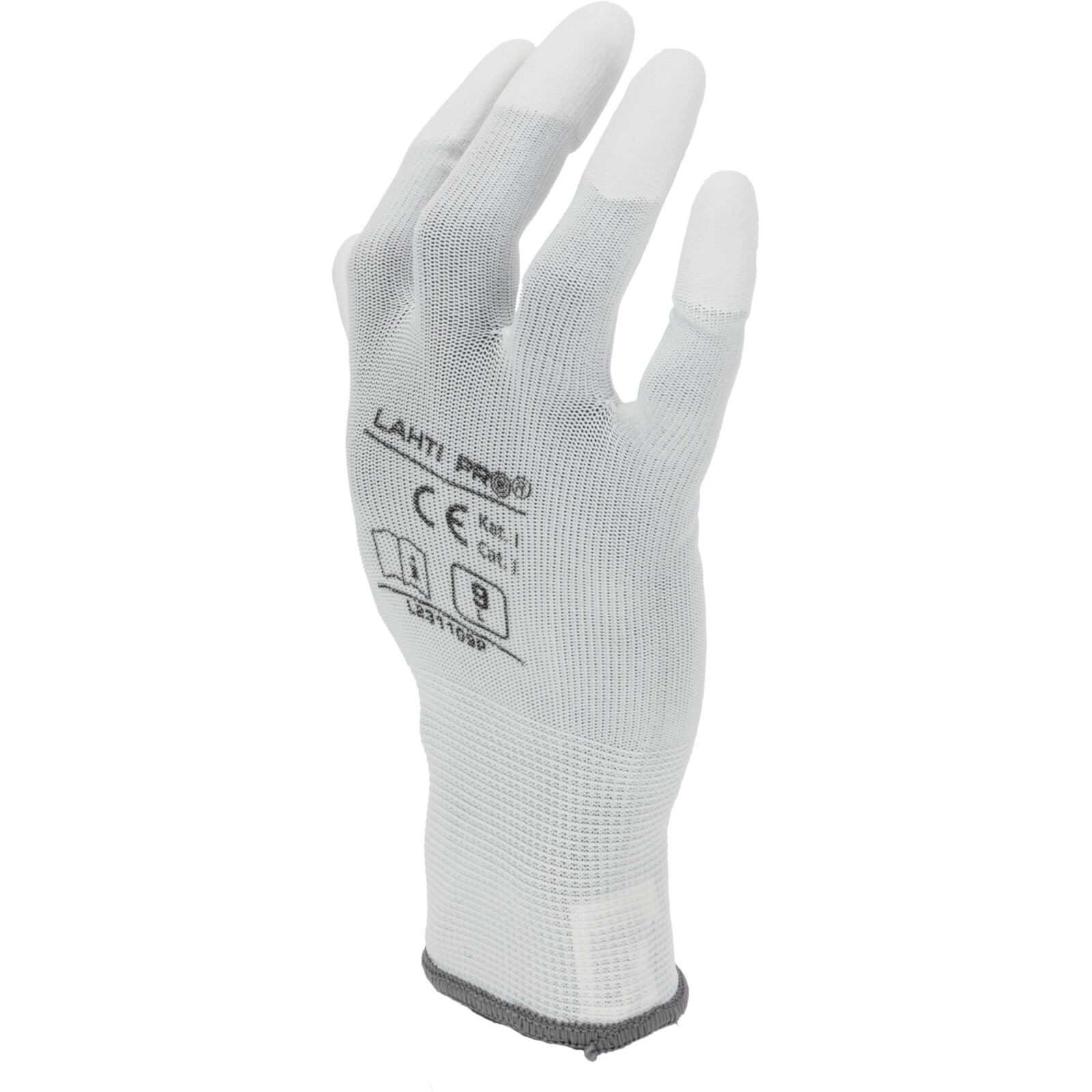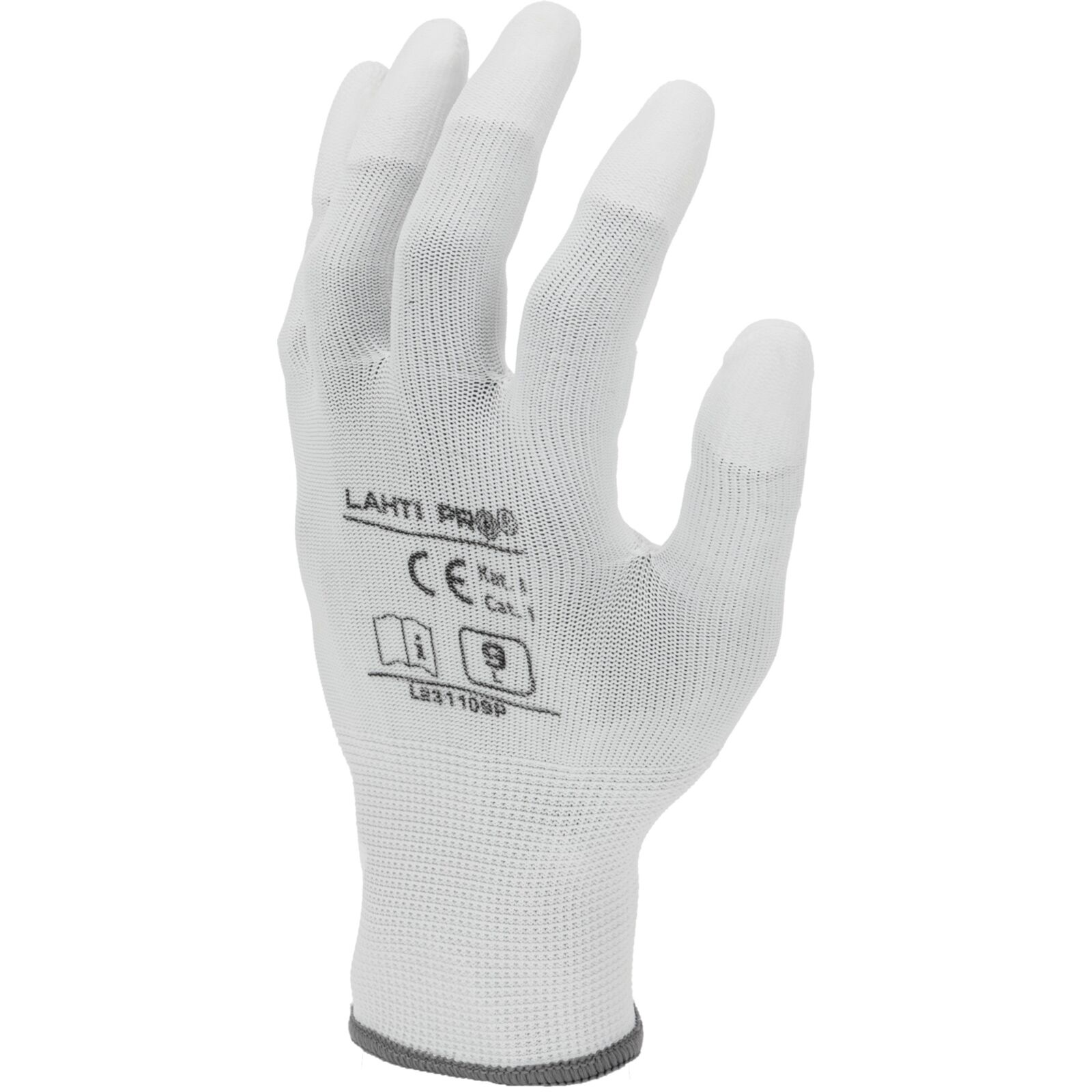 Rękawice PU końcówki palców białe L2311 CE LAHTI