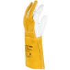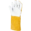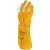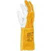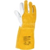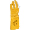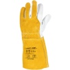 Model charakteryzuje się wysoką odpornością na możliwość zapalenia, poziom odporności 4, co czyni go odpowiednim wyborem do prac spawalniczych. Długość rękawicy wynosząca 35 cm skutecznie chroni dłoń oraz część przedramienia przed odpryskami i iskrami. Zakończenie ściągaczem zapewnia dobre dopasowanie oraz stabilność podczas pracy.