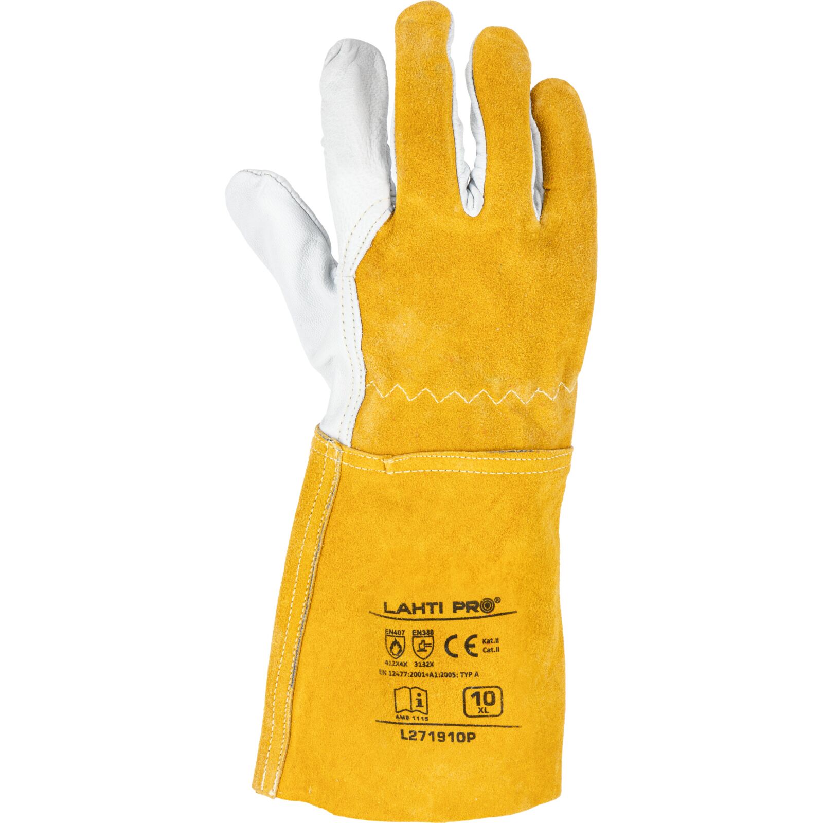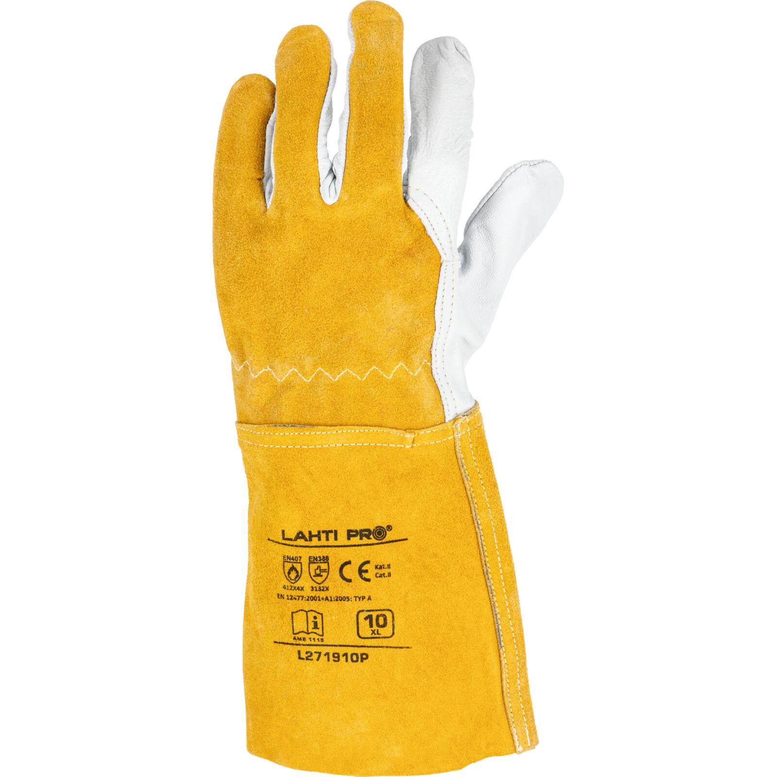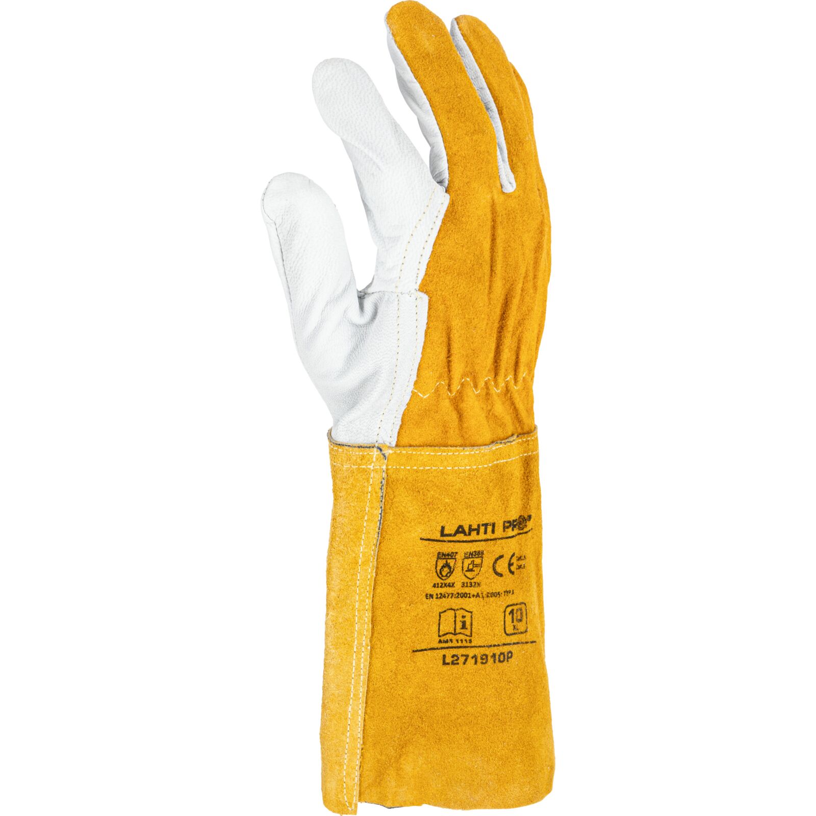 Rękawice Spawalnicze ze Skóry Koziej i Bydlęcej Lahti L271910P 35 cm Rozmiar 10 CE