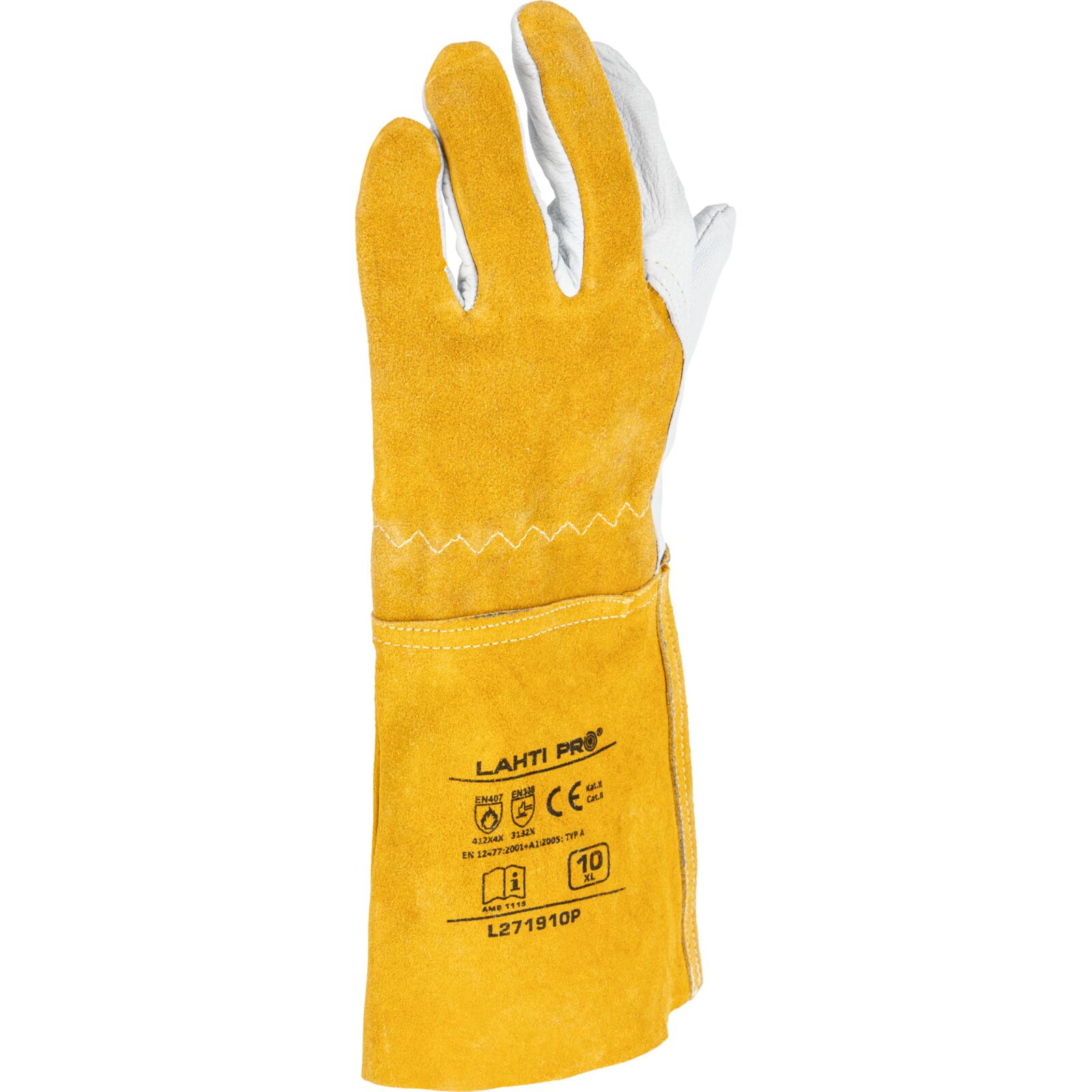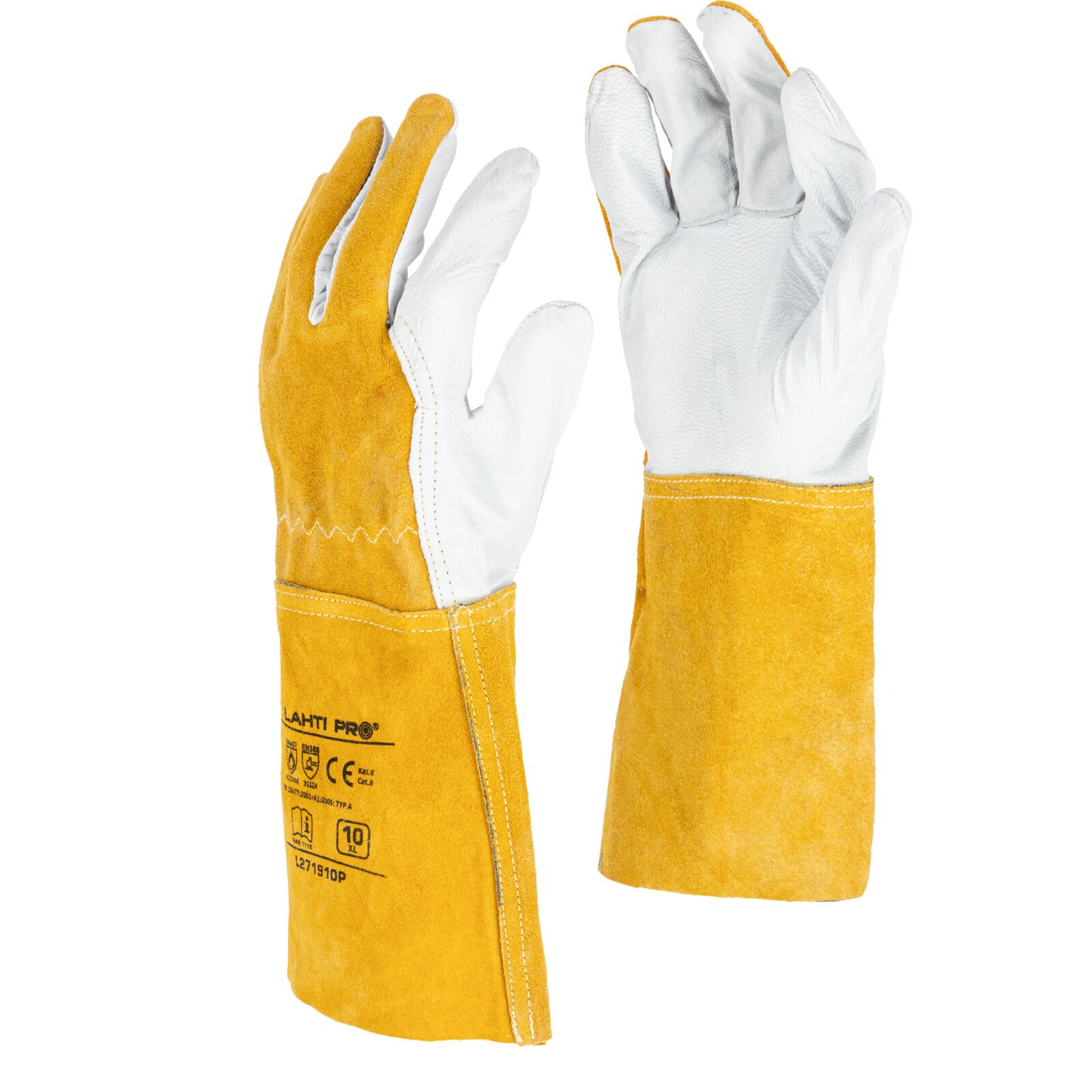 Rękawice spawalnicze Lahti L271910P to profesjonalne rękawice ochronne przeznaczone do prac spawalniczych oraz pracy w podwyższonej temperaturze. Wykonane z wysokiej jakości skóry koziej oraz skóry bydlęcej zapewniają trwałość, odporność na uszkodzenia mechaniczne oraz wysoki komfort użytkowania.