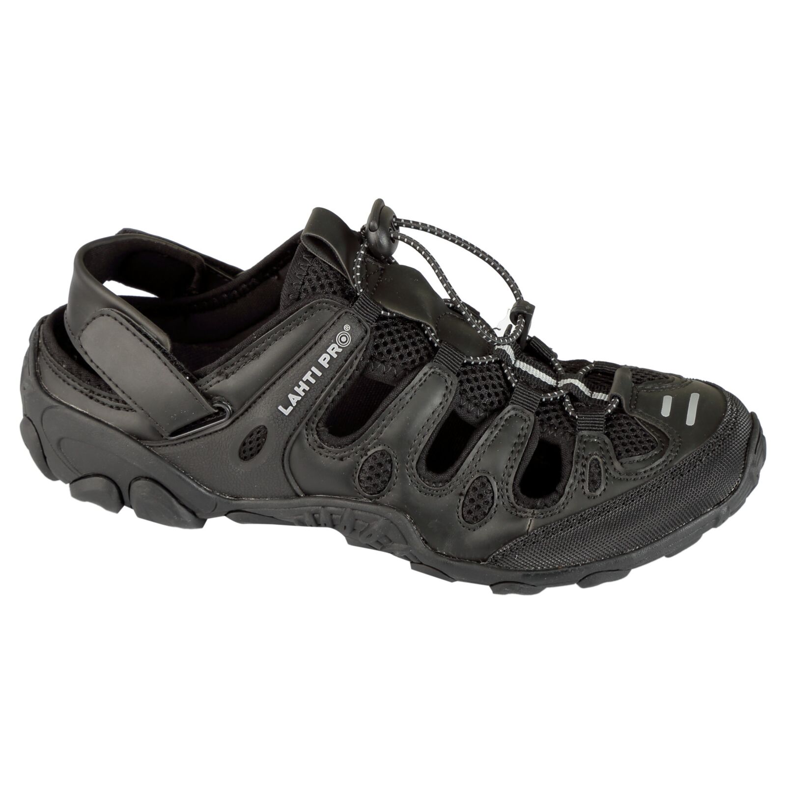 Cholewka wykonana jest z PU i dzianiny siatkowej, co gwarantuje trwałość, elastyczność i przewiewność. Elastyczne sznurowadła regulowane zaciskiem umożliwiają idealne dopasowanie sandałów do stopy, zwiększając stabilność i wygodę podczas pracy