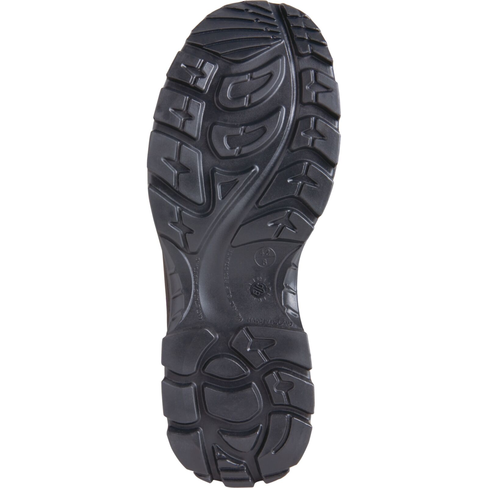 Podeszwa GRIMM wykonana z poliuretanu dwugęstościowego łączy nowoczesną linię wzorniczą z funkcjonalnością. Głęboki, antypoślizgowy protektor zapewnia stabilność na podłożach stalowych, ceramicznych oraz nierównych nawierzchniach. W przedniej części buta znajdują się dodatkowe zabezpieczenia chroniące palce stopy przed urazami mechanicznymi.