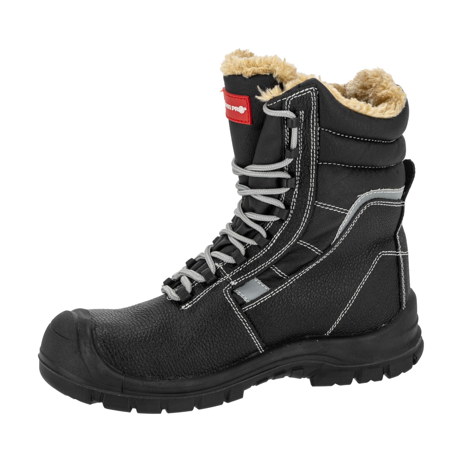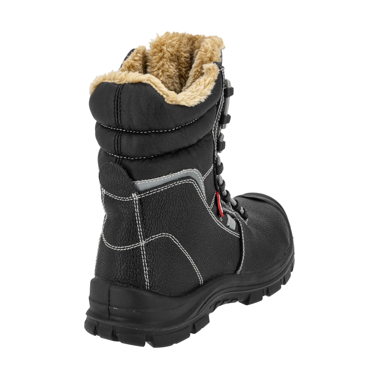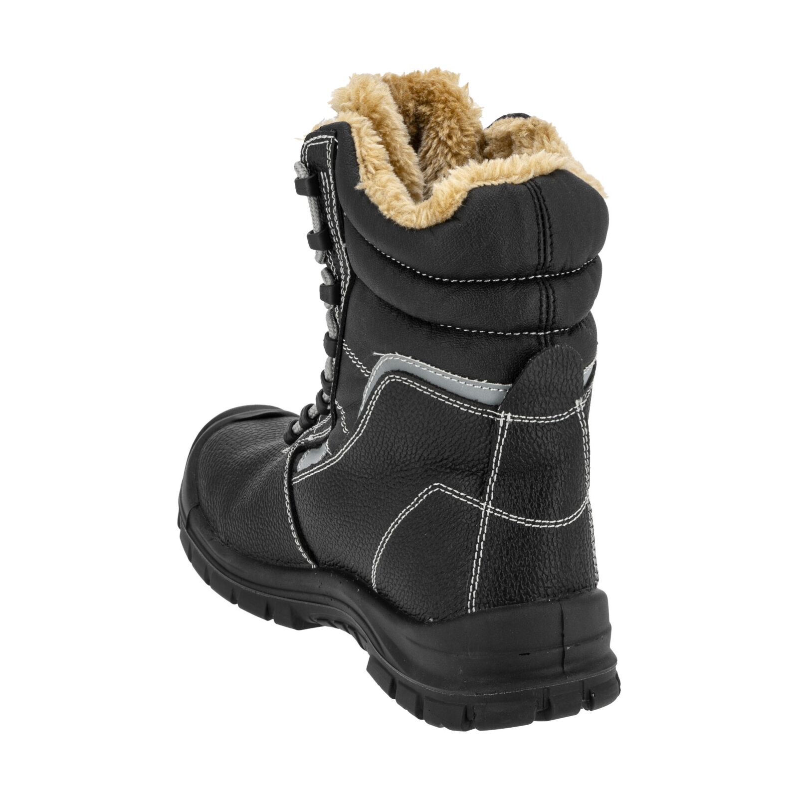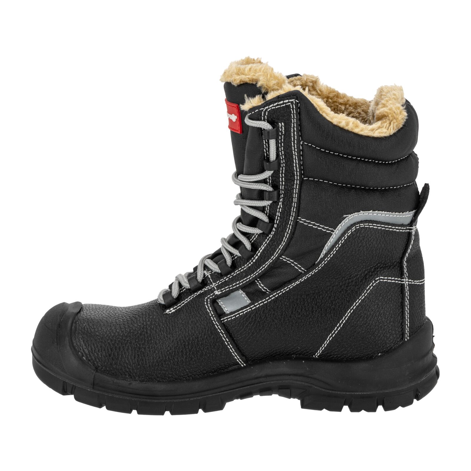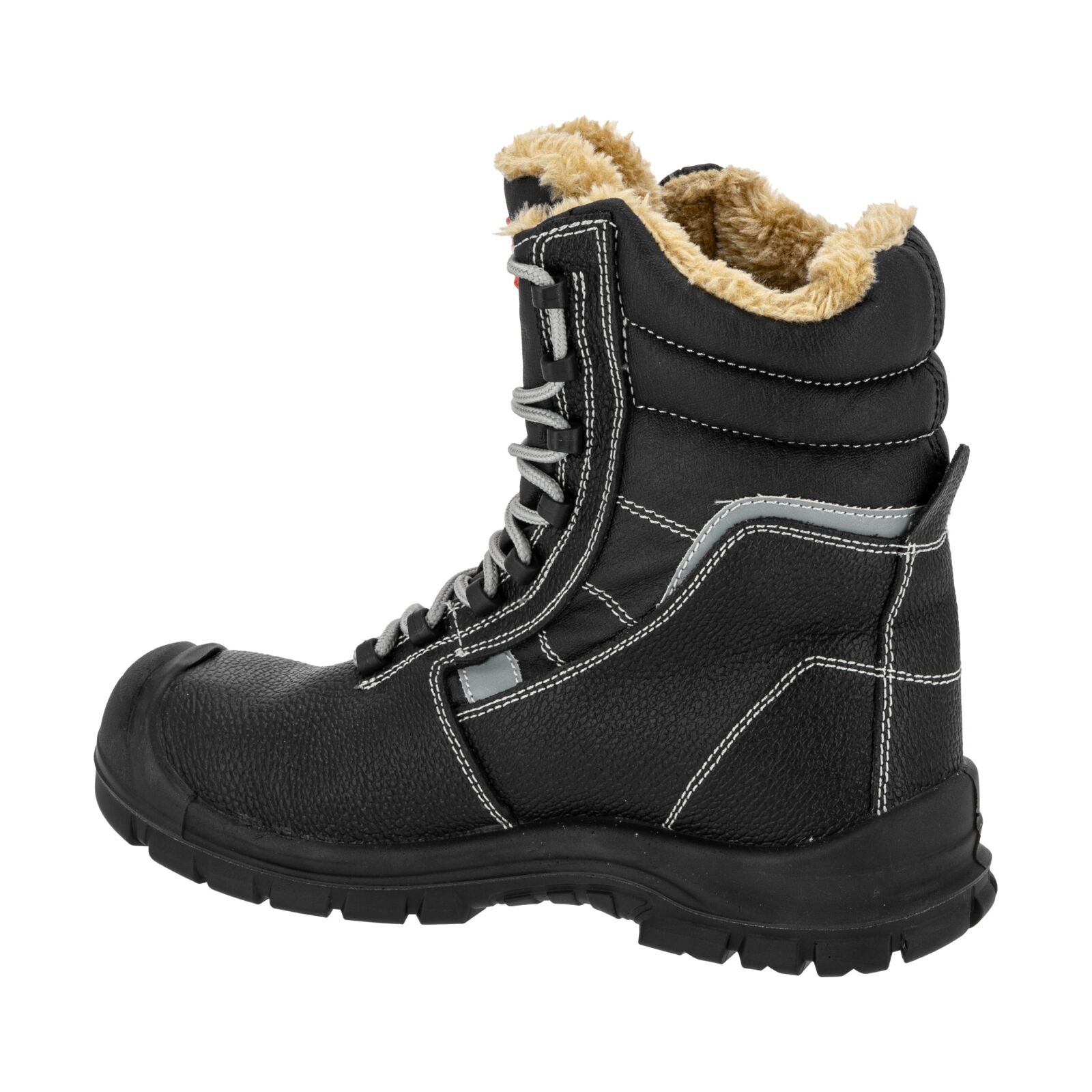 Wierzch wykonany z trwałej skóry gwarantuje odporność na przetarcia i uszkodzenia mechaniczne. Podszewka oraz wymienna wyściółka futerkowa zapewniają optymalne ocieplenie stopy i komfort cieplny podczas długotrwałego użytkowania. Wysoka cholewka stabilizuje kostkę, zwiększając ochronę przed urazami. Elementy odblaskowe podnoszą bezpieczeństwo podczas pracy w warunkach słabej widoczności. Obuwie jest całkowicie wolne od elementów metalowych.