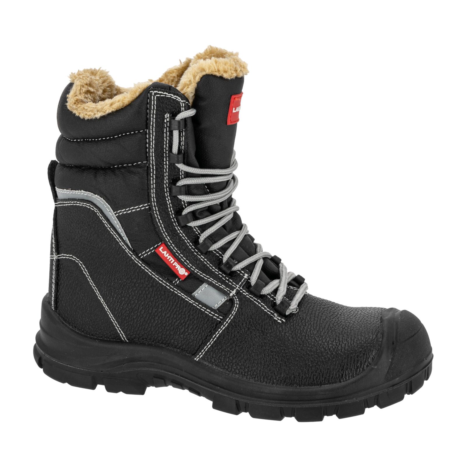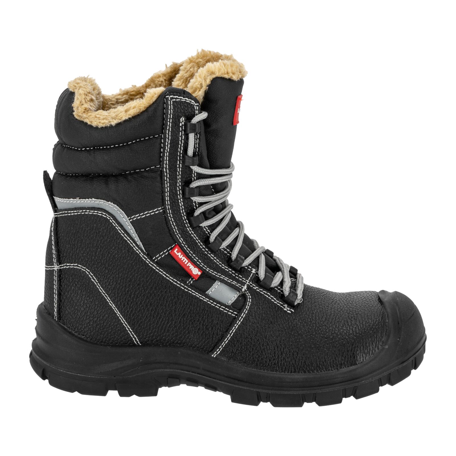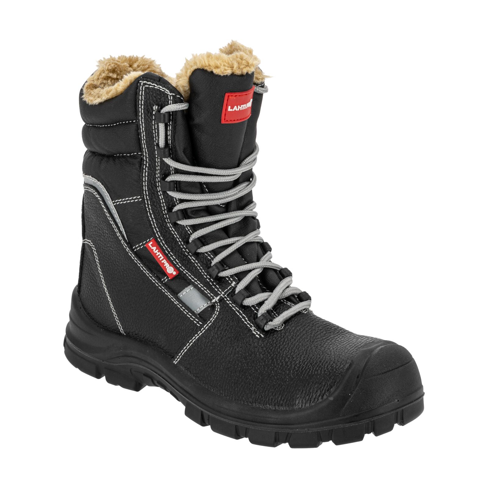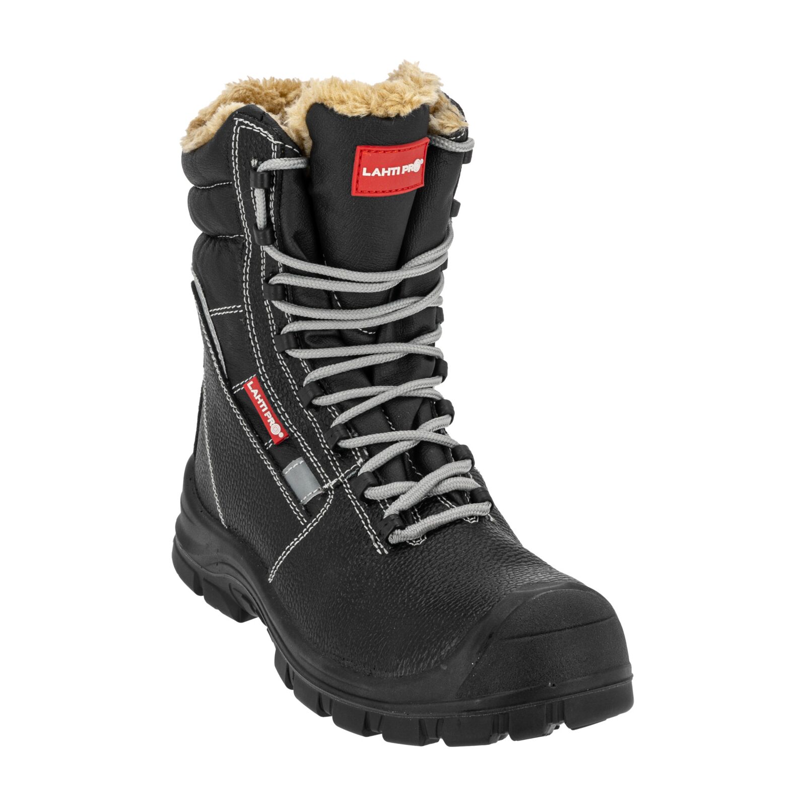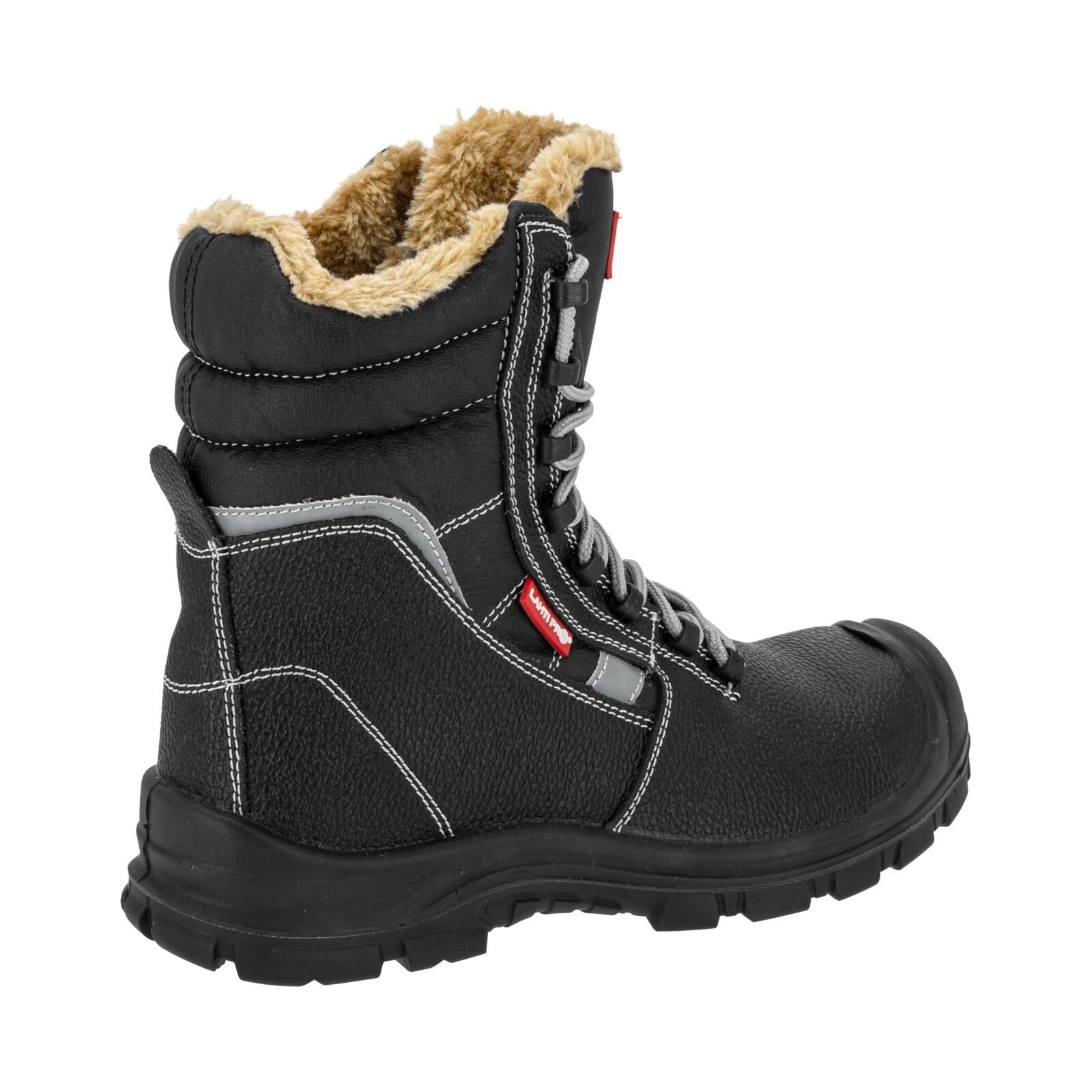 Wierzch wykonany z trwałej skóry gwarantuje odporność na przetarcia i uszkodzenia mechaniczne. Podszewka oraz wymienna wyściółka futerkowa zapewniają optymalne ocieplenie stopy i komfort cieplny podczas długotrwałego użytkowania. Wysoka cholewka stabilizuje kostkę, zwiększając ochronę przed urazami. Elementy odblaskowe podnoszą bezpieczeństwo podczas pracy w warunkach słabej widoczności. Obuwie jest całkowicie wolne od elementów metalowych.