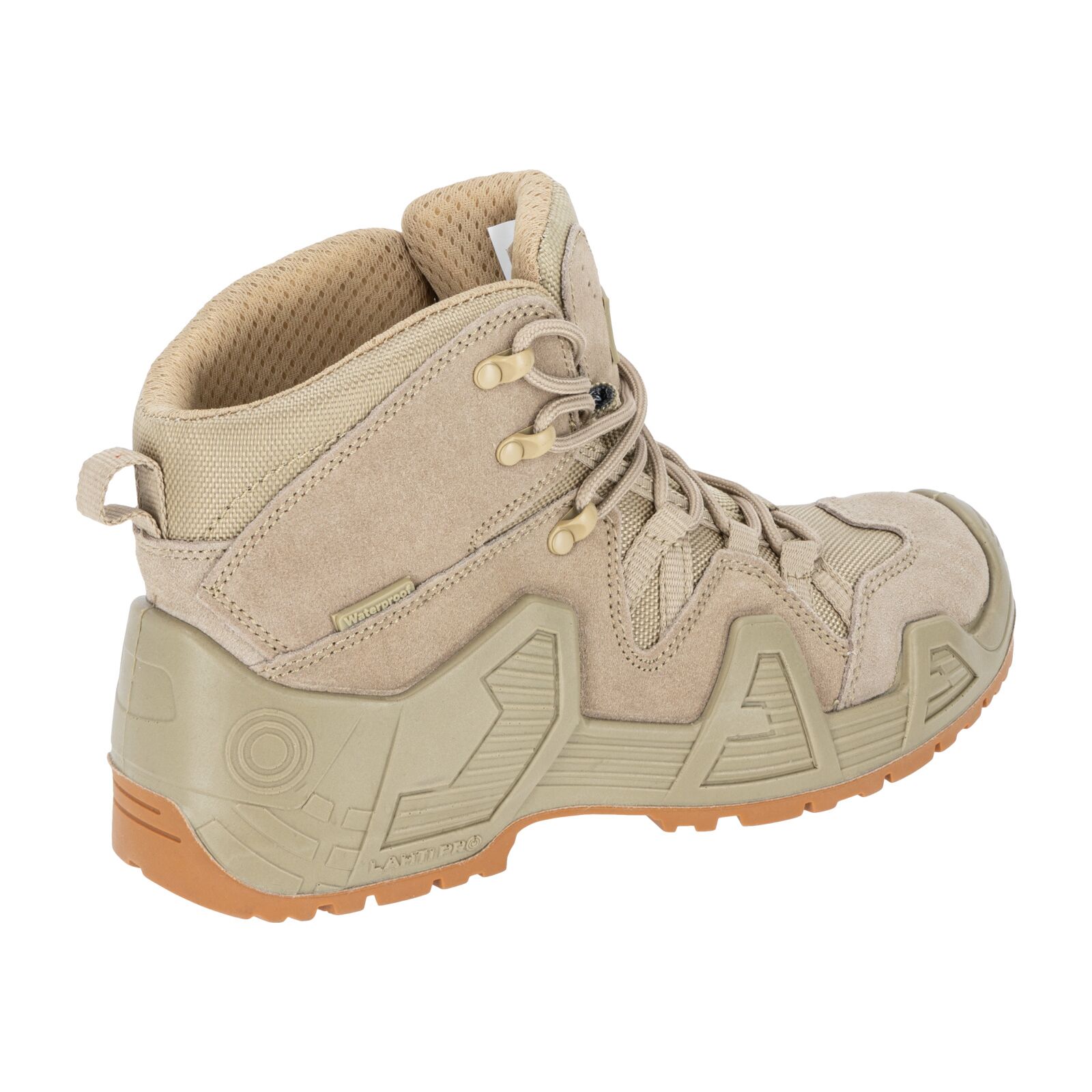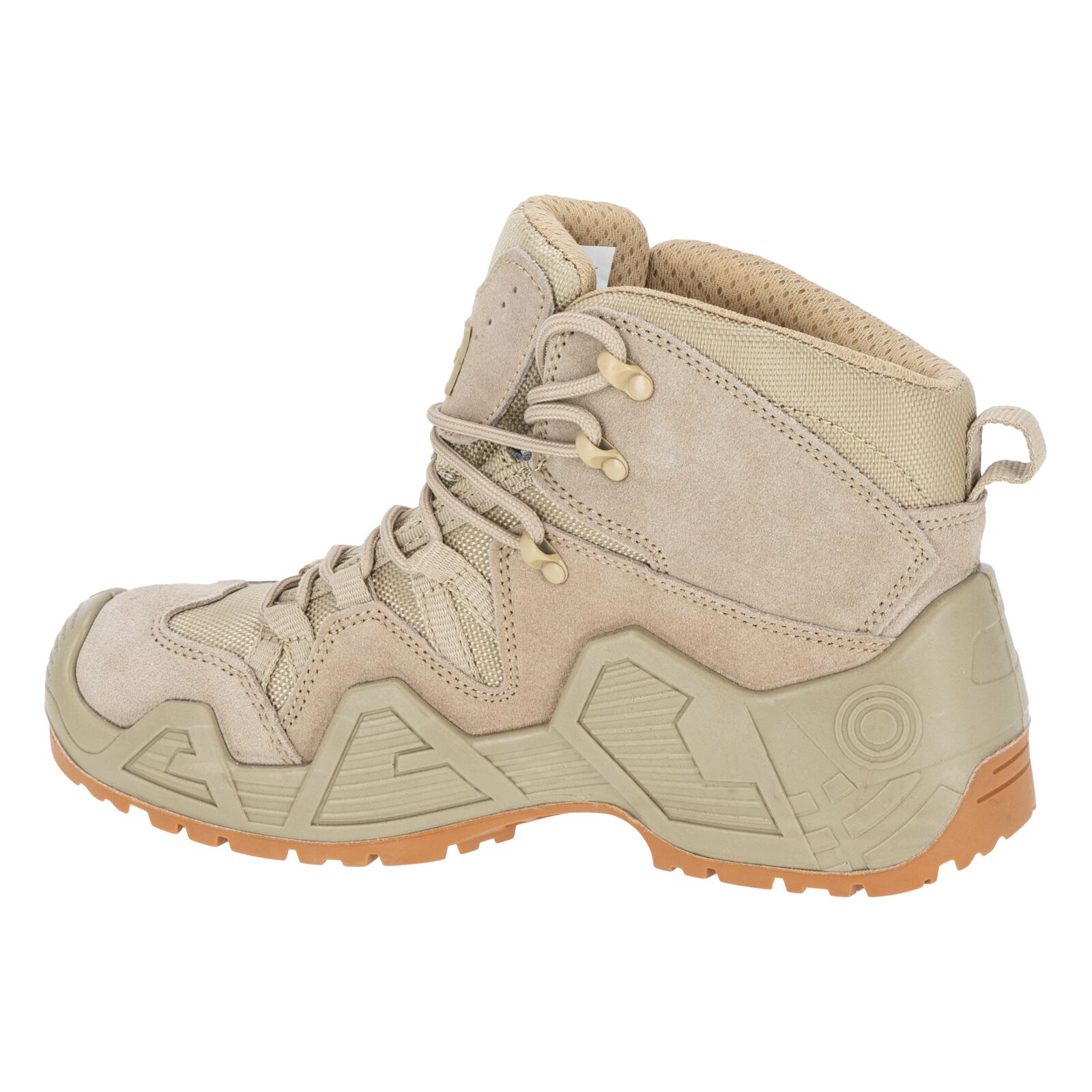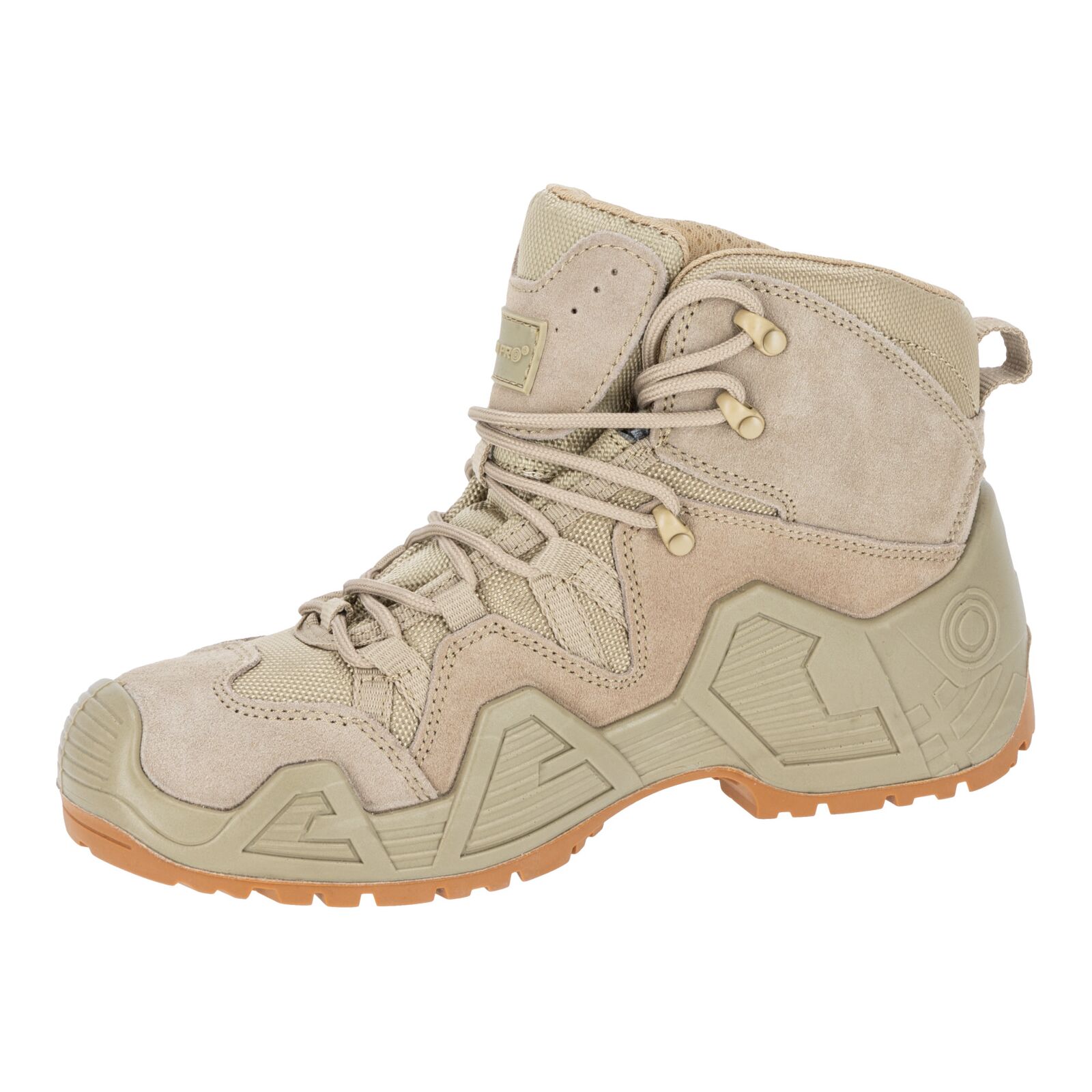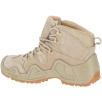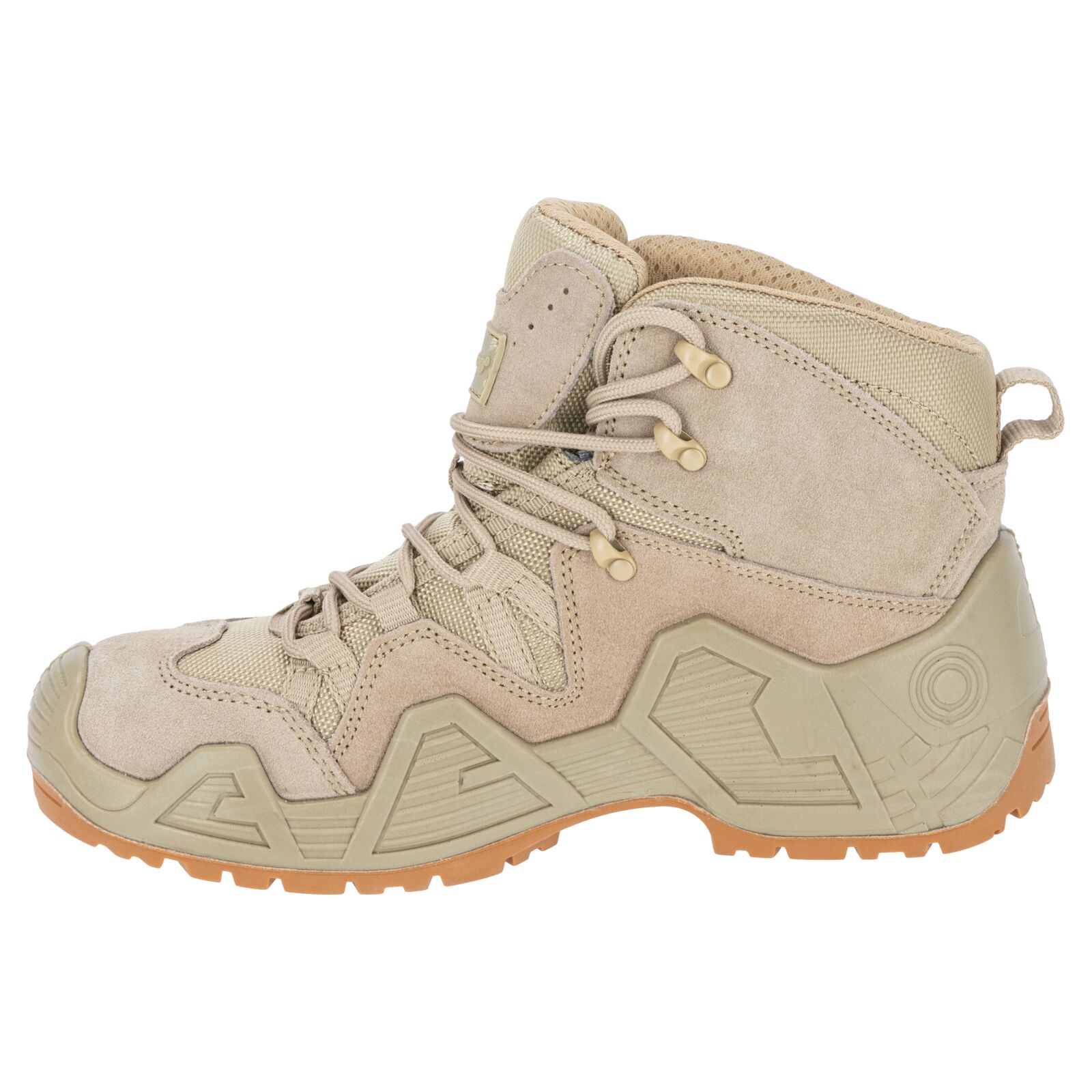 Wierzch wykonany ze skóry zamszowej połączonej z tkaniną typu Oxford o właściwościach hydrofobowych chroni przed wilgocią i zabrudzeniami, zapewniając trwałość oraz estetyczny wygląd. Podszewka to wbudowana oddychająca i wodoodporna skarpeta z membraną, wspomagająca wentylację stopy i utrzymująca ją w suchym komforcie. Dodatkowo podszewka zawiera dzianinę siatkową dla lepszej cyrkulacji powietrza.