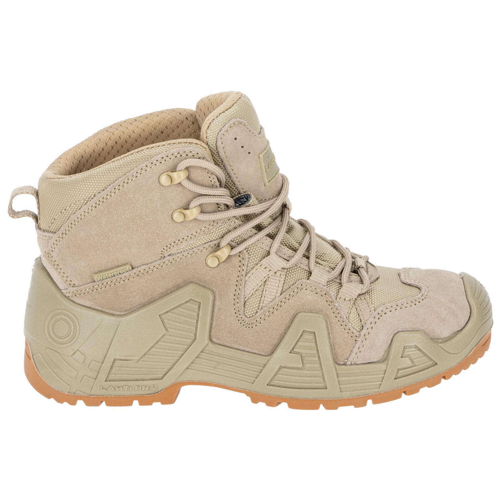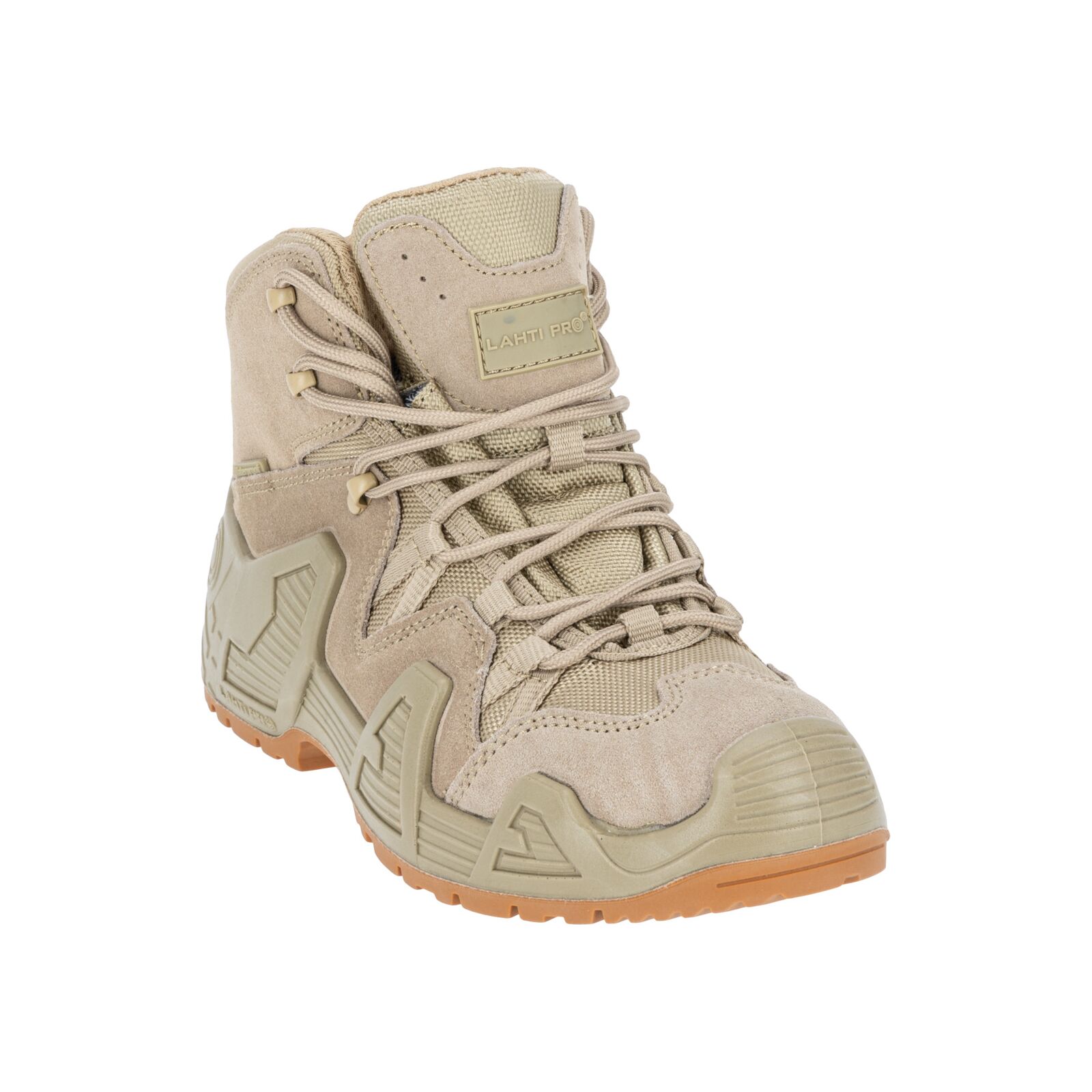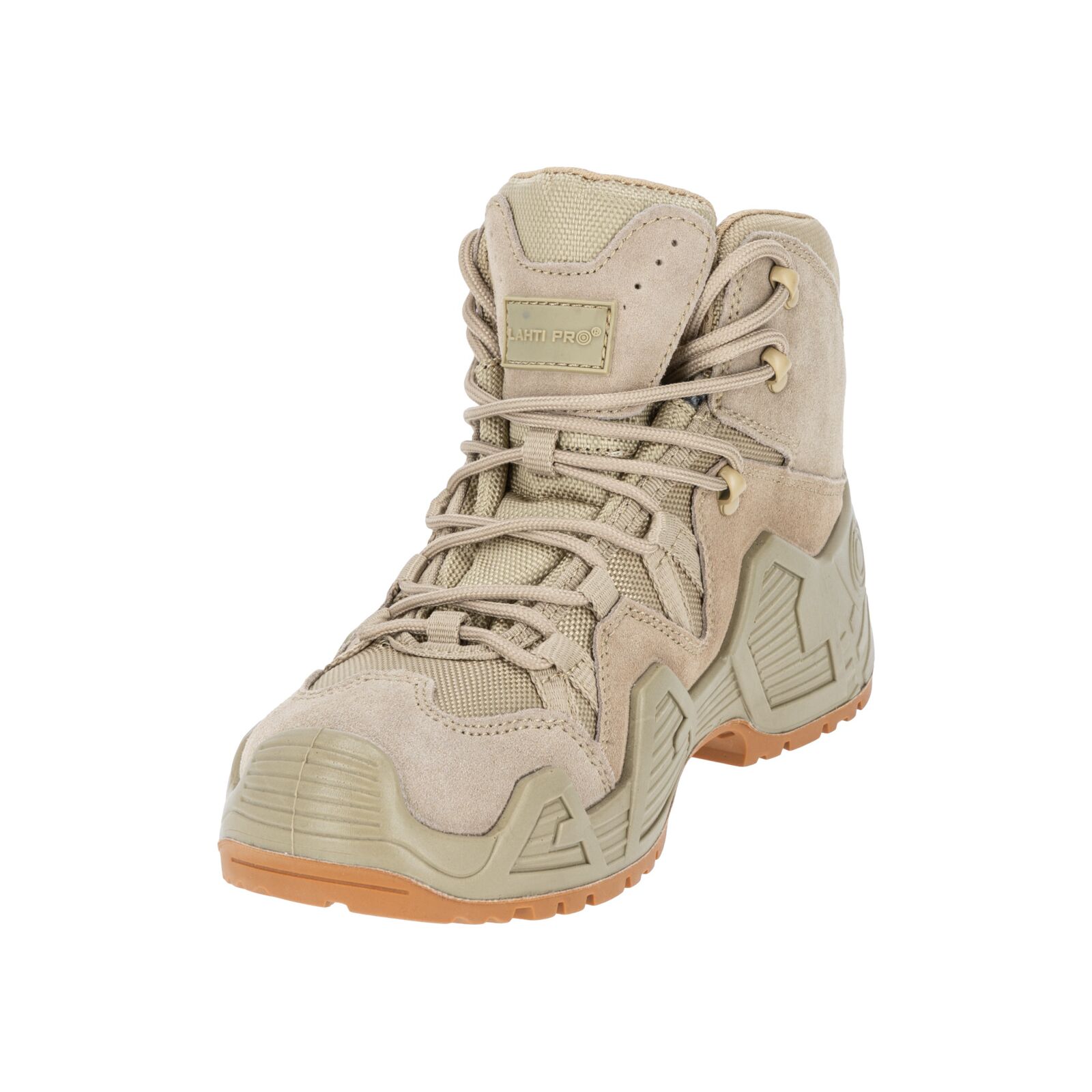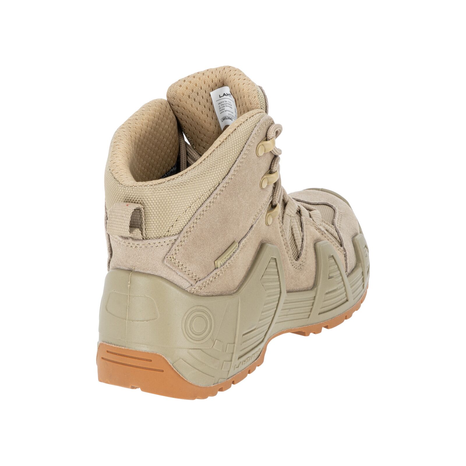 Wierzch wykonany ze skóry zamszowej połączonej z tkaniną typu Oxford o właściwościach hydrofobowych chroni przed wilgocią i zabrudzeniami, zapewniając trwałość oraz estetyczny wygląd. Podszewka to wbudowana oddychająca i wodoodporna skarpeta z membraną, wspomagająca wentylację stopy i utrzymująca ją w suchym komforcie. Dodatkowo podszewka zawiera dzianinę siatkową dla lepszej cyrkulacji powietrza.