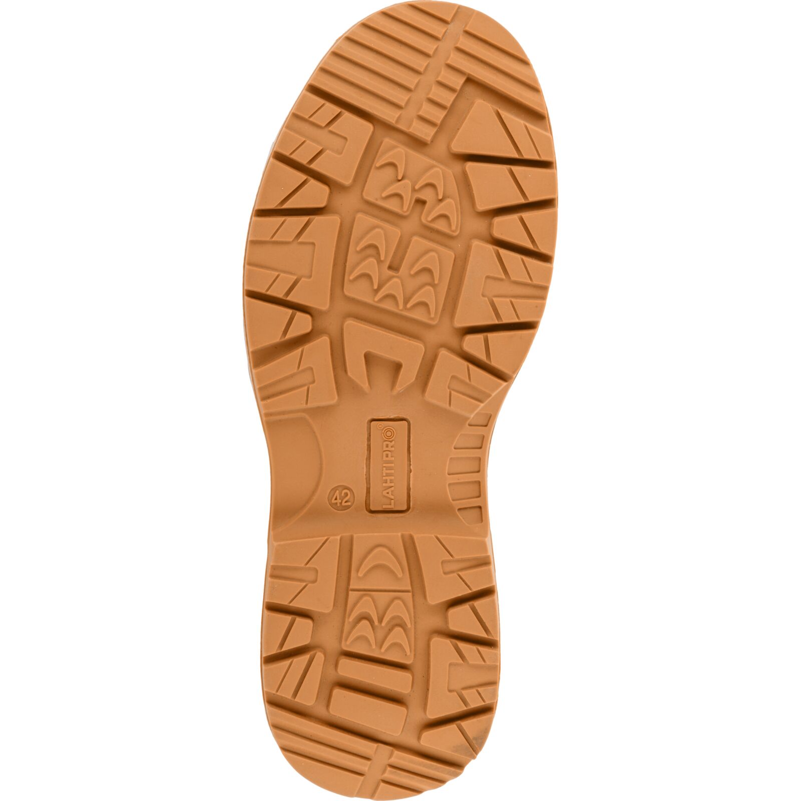 Gumowa podeszwa z głębokim bieżnikiem zwiększa przyczepność do podłoża, poprawiając stabilność i bezpieczeństwo użytkownika w każdych warunkach.