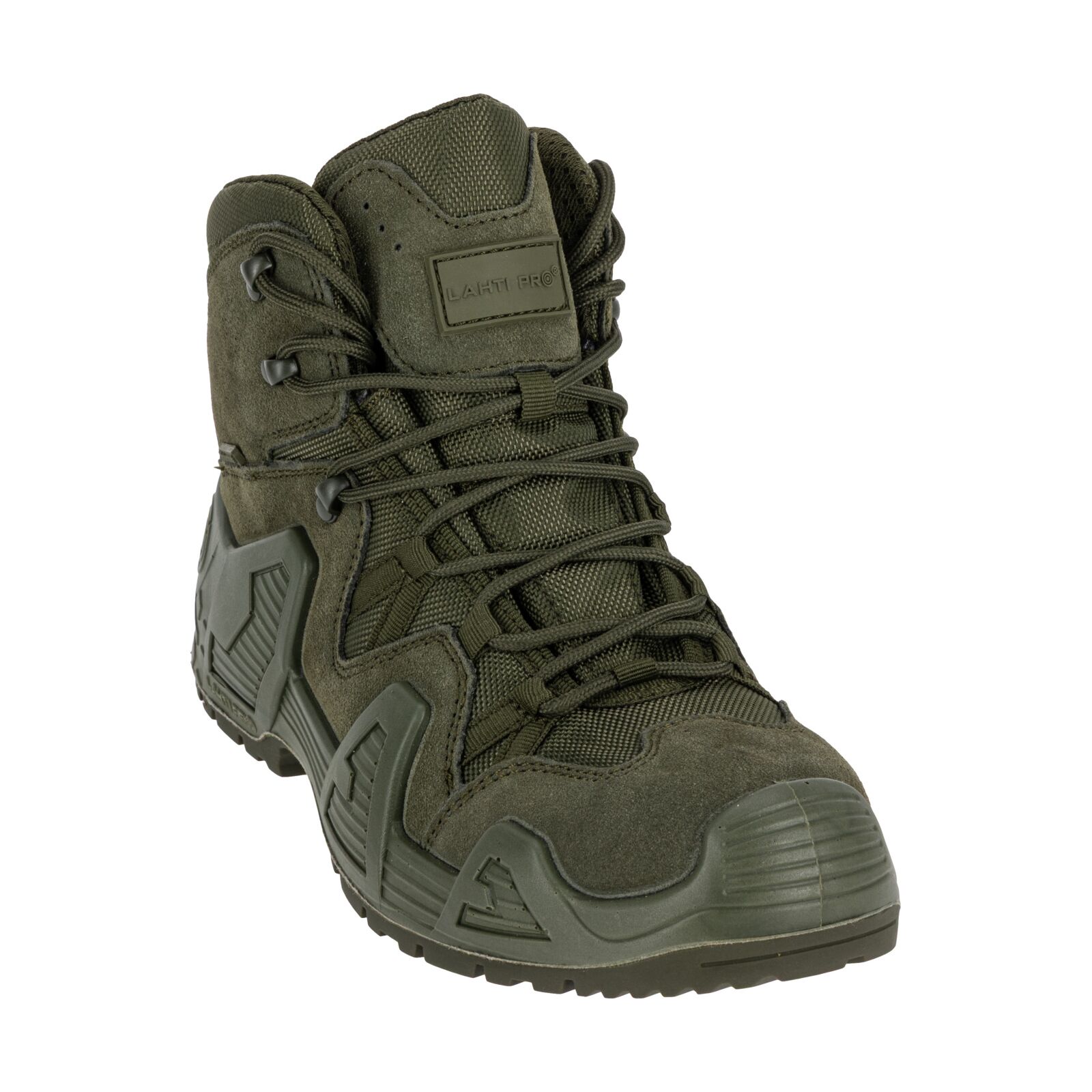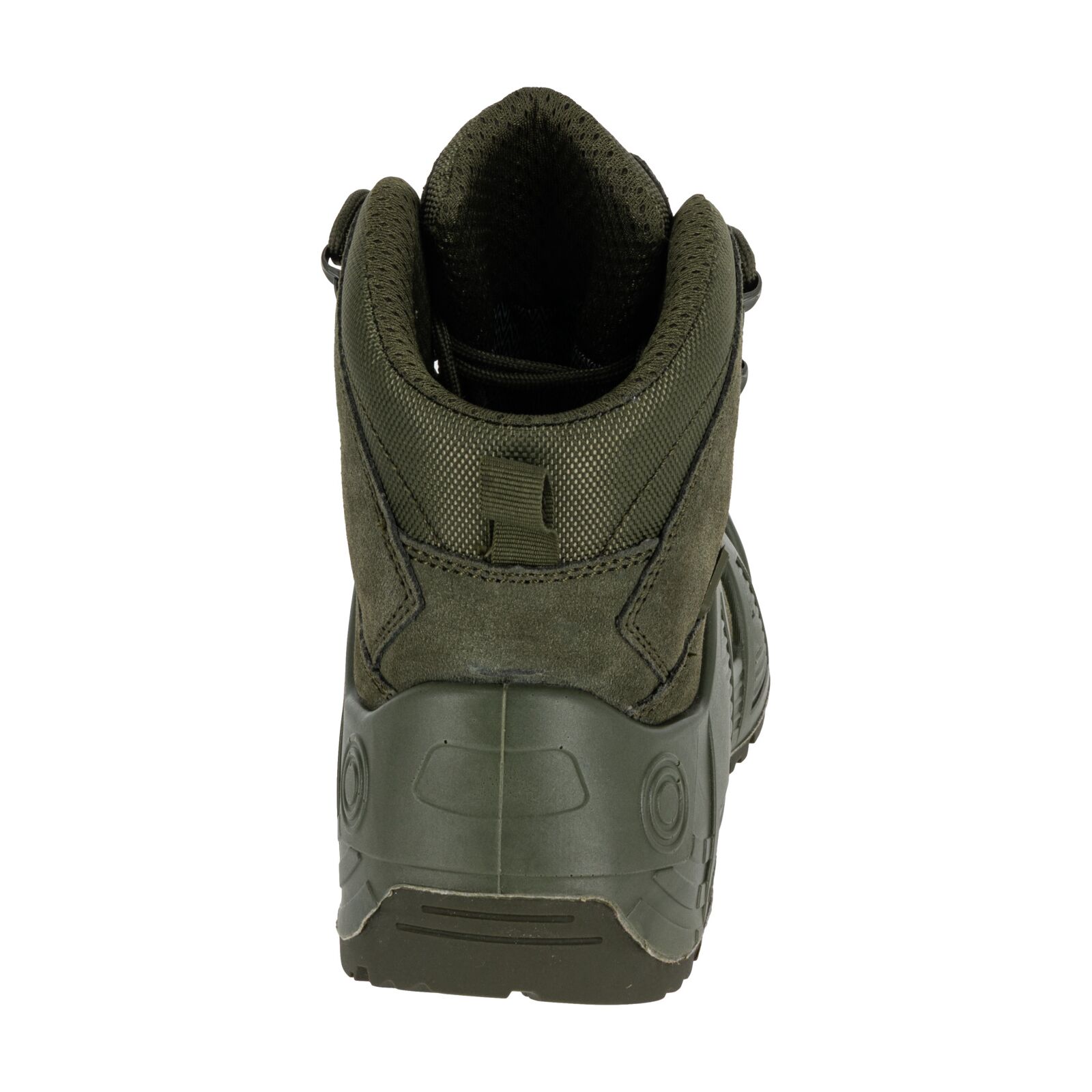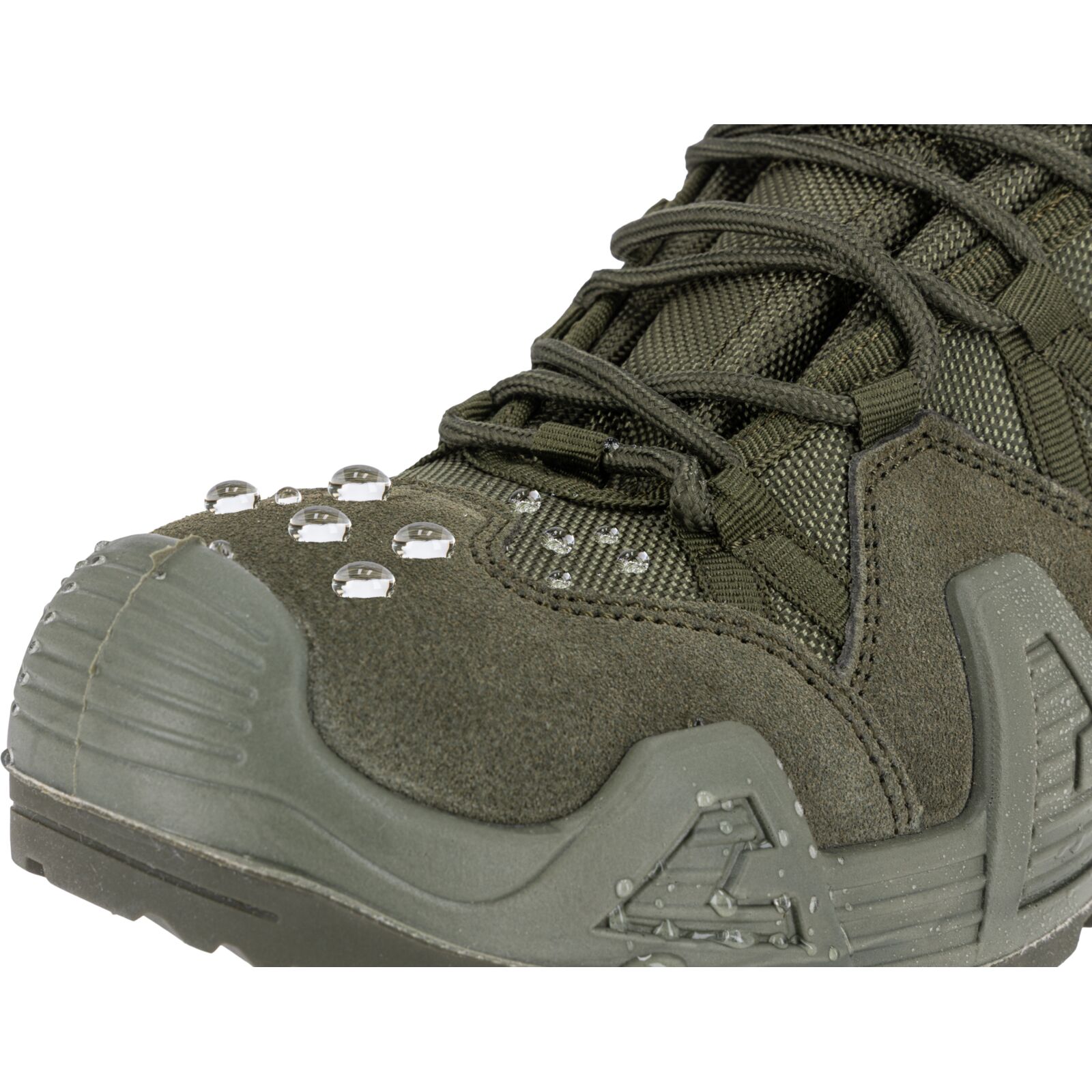 Wierzch wykonany ze skóry zamszowej i tkaniny typu Oxford o właściwościach hydrofobowych chroni przed wilgocią i zabrudzeniami, jednocześnie zapewniając trwałość i estetyczny wygląd. Podszewka stanowi wbudowana oddychająca i wodoodporna skarpeta z membraną, wspomagająca wentylację stopy i utrzymująca suchą stopę w każdych warunkach, dodatkowo uzupełniona dzianiną siatkową dla większego komfortu.