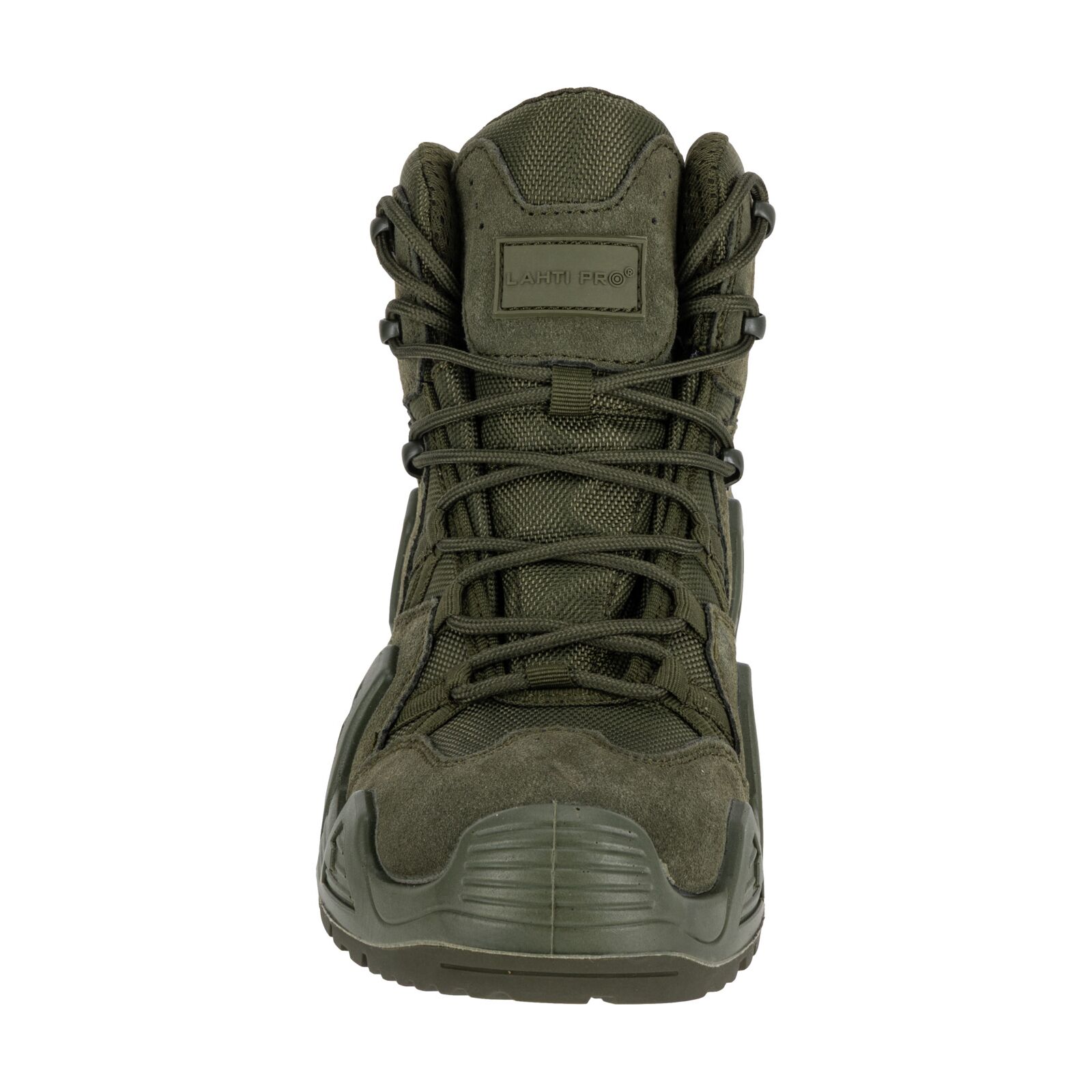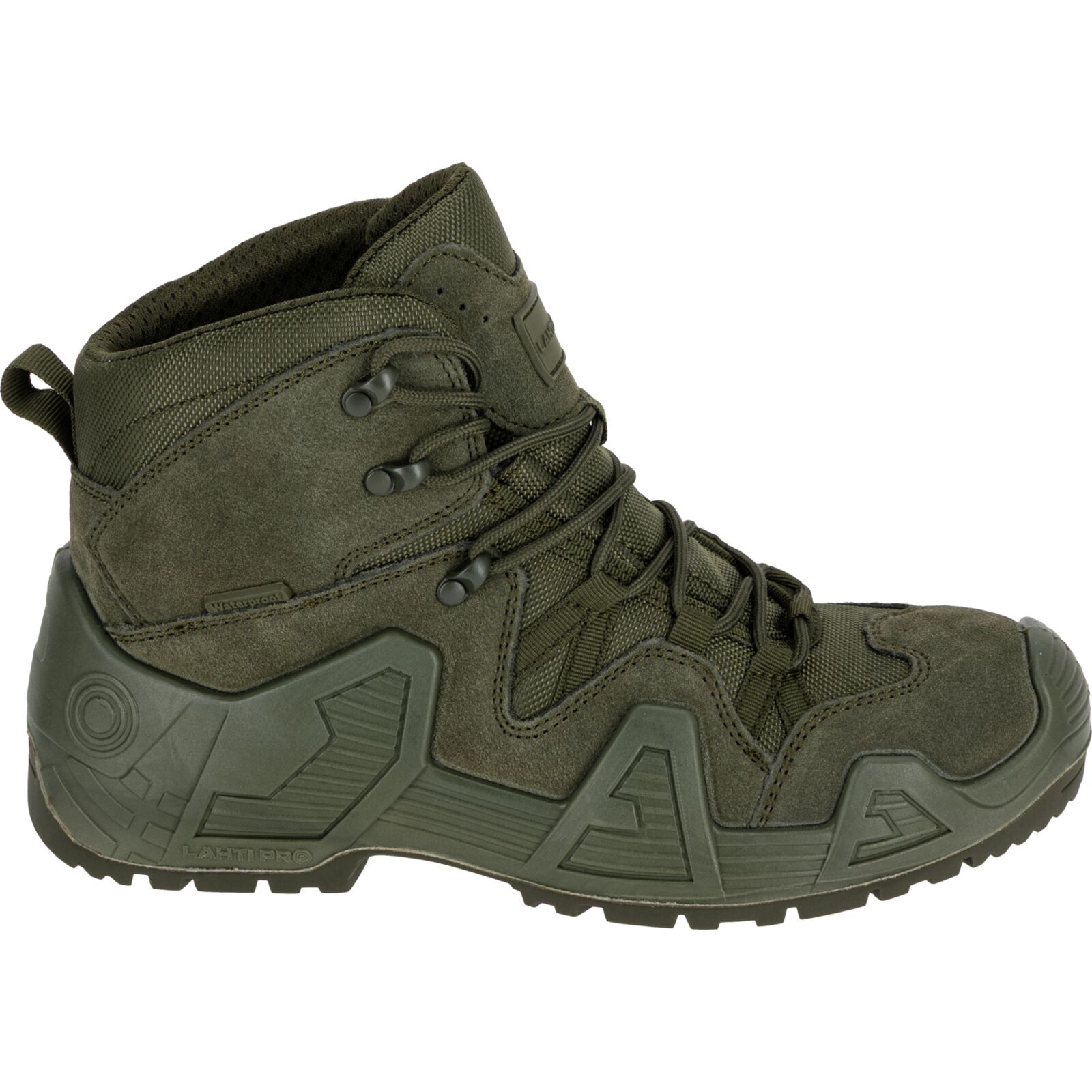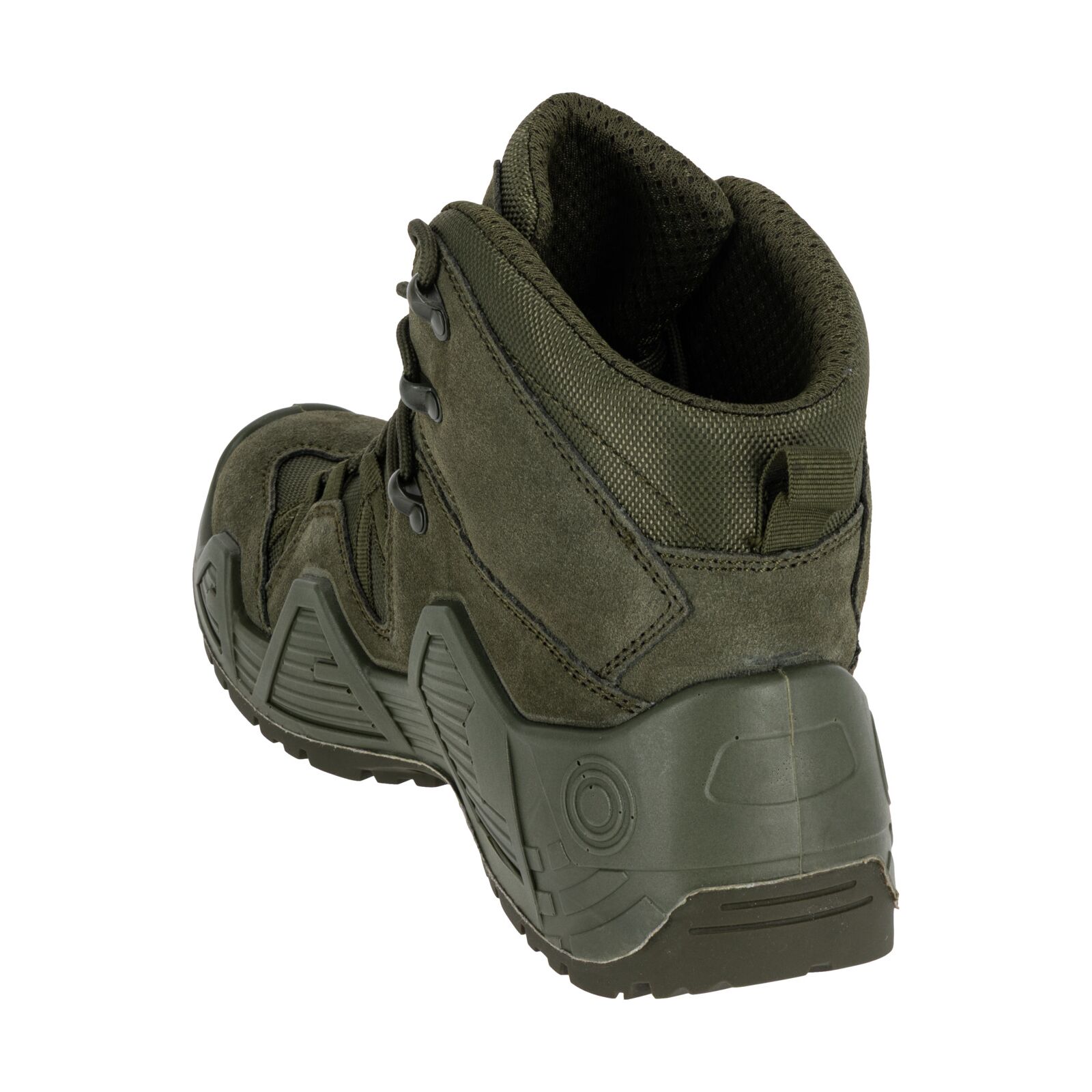 Wierzch wykonany ze skóry zamszowej i tkaniny typu Oxford o właściwościach hydrofobowych chroni przed wilgocią i zabrudzeniami, jednocześnie zapewniając trwałość i estetyczny wygląd. Podszewka stanowi wbudowana oddychająca i wodoodporna skarpeta z membraną, wspomagająca wentylację stopy i utrzymująca suchą stopę w każdych warunkach, dodatkowo uzupełniona dzianiną siatkową dla większego komfortu.