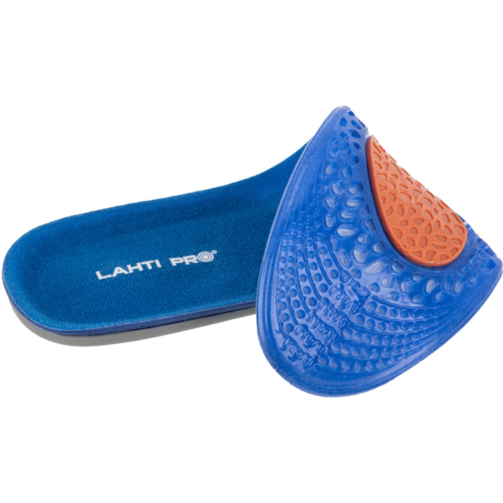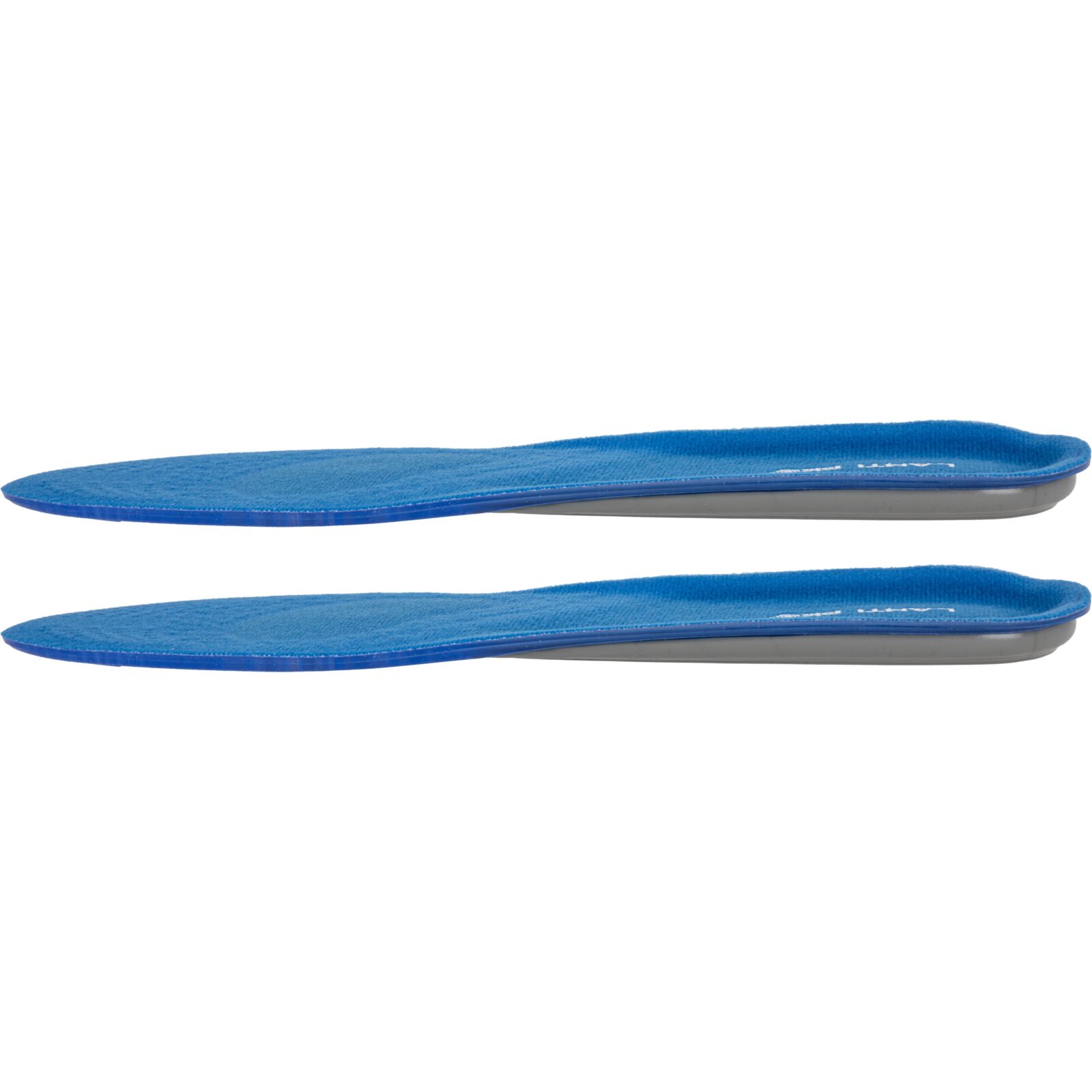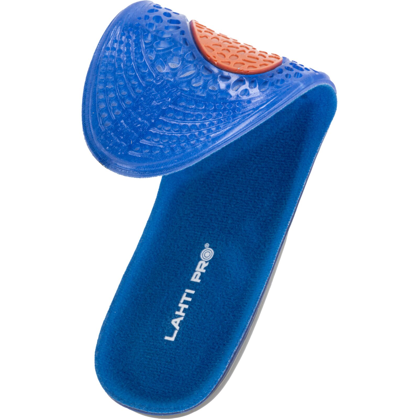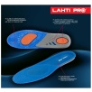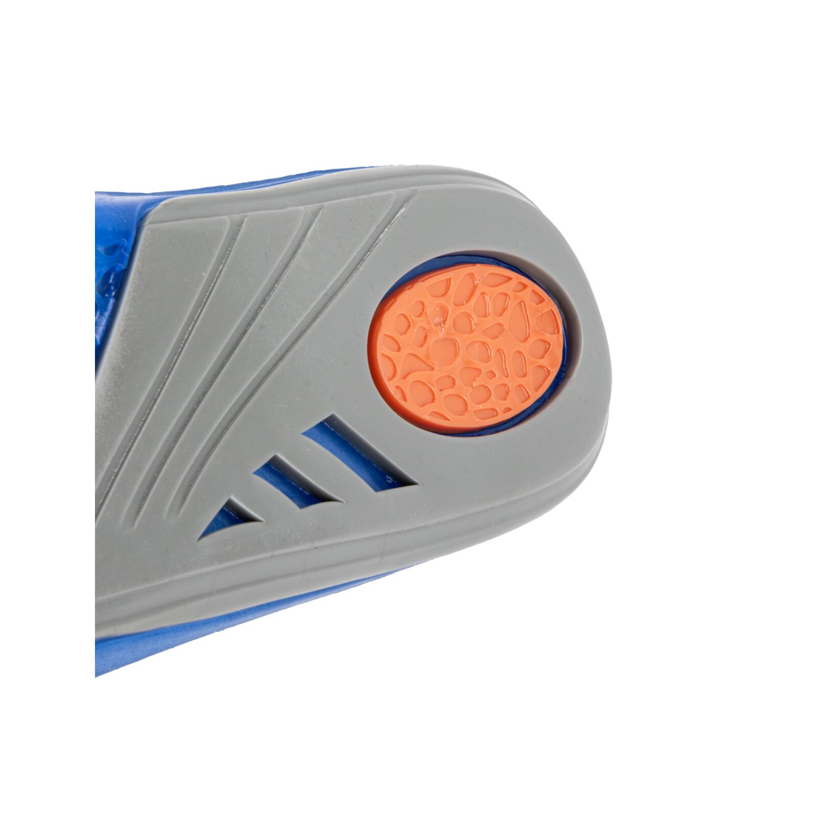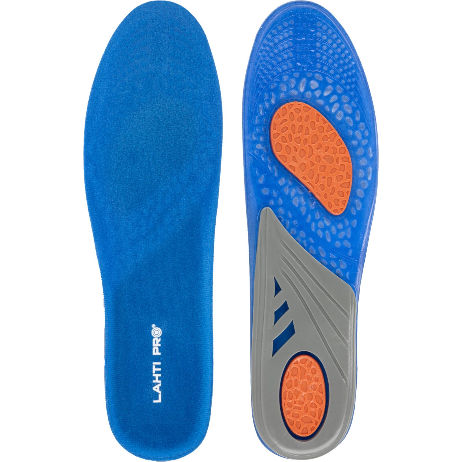 Wkładki wykonano z materiału TPE połączonego z dzianiną poliestrową. Żel o różnym stopniu gęstości został zaprojektowany w trzech strefach funkcjonalnych: miękki i elastyczny niebieski żel łagodzi nacisk stopy na podłoże, pomarańczowy żel pełni funkcję amortyzatora mikrowstrząsów powstających podczas kontaktu stopy z podłożem, a szary żel stabilizuje piętę, utrzymując ją w odpowiedniej pozycji oraz podtrzymuje łuk wzdłużny stopy, odciążając ją.
