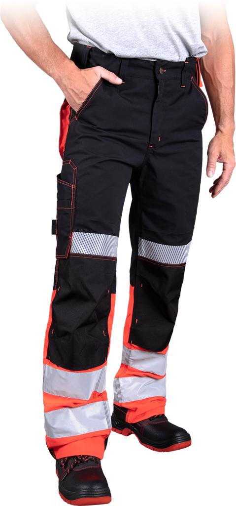 Czarno-czerwone spodnie ochronne do pasa THORVIS
