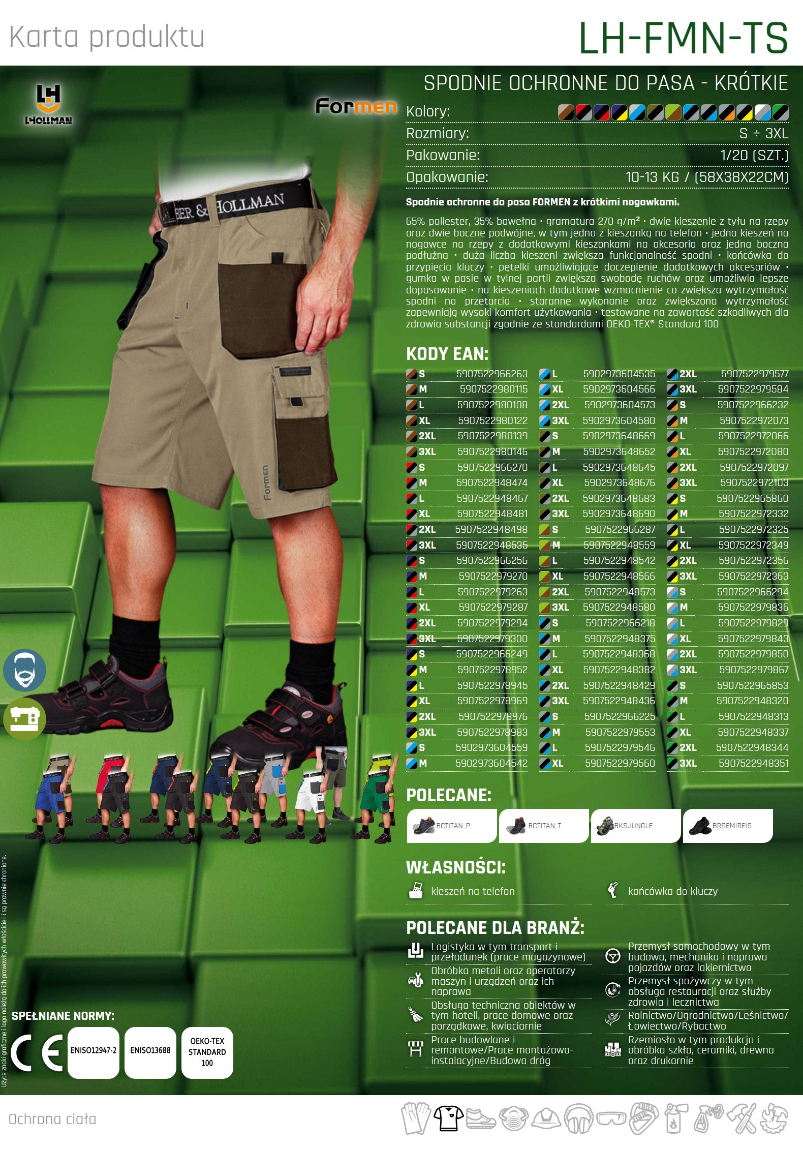 Spodnie ochronne do pasa FORMEN z krótkimi nogawkami.
