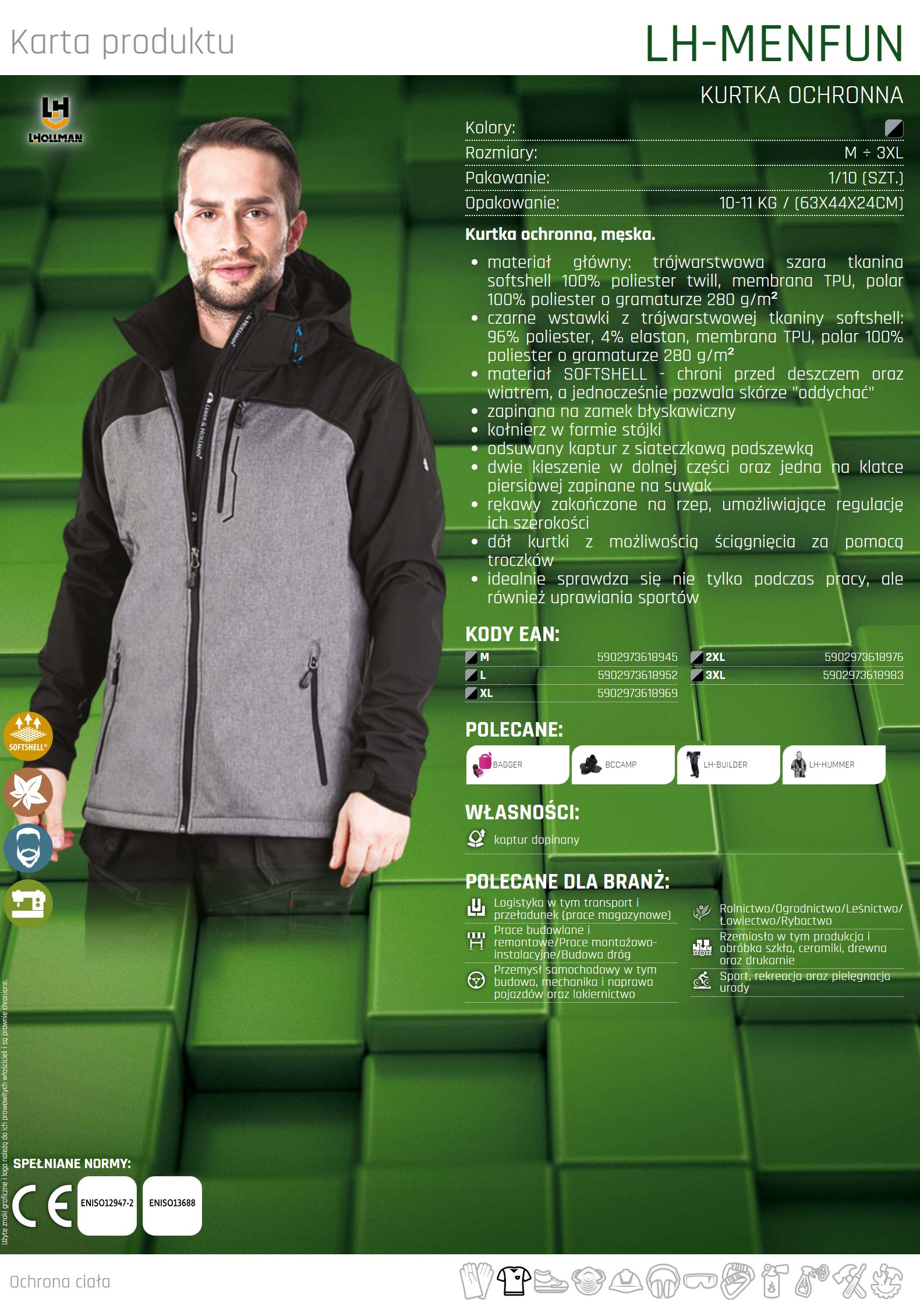 W tej kategorii oferujemy odzież roboczą, fartuchy ochronne, kombinezony i kurtki ochronne, które zapewniają komfort i ochronę przed czynnikami zewnętrznymi, takimi jak wilgoć, zimno czy chemikalia.